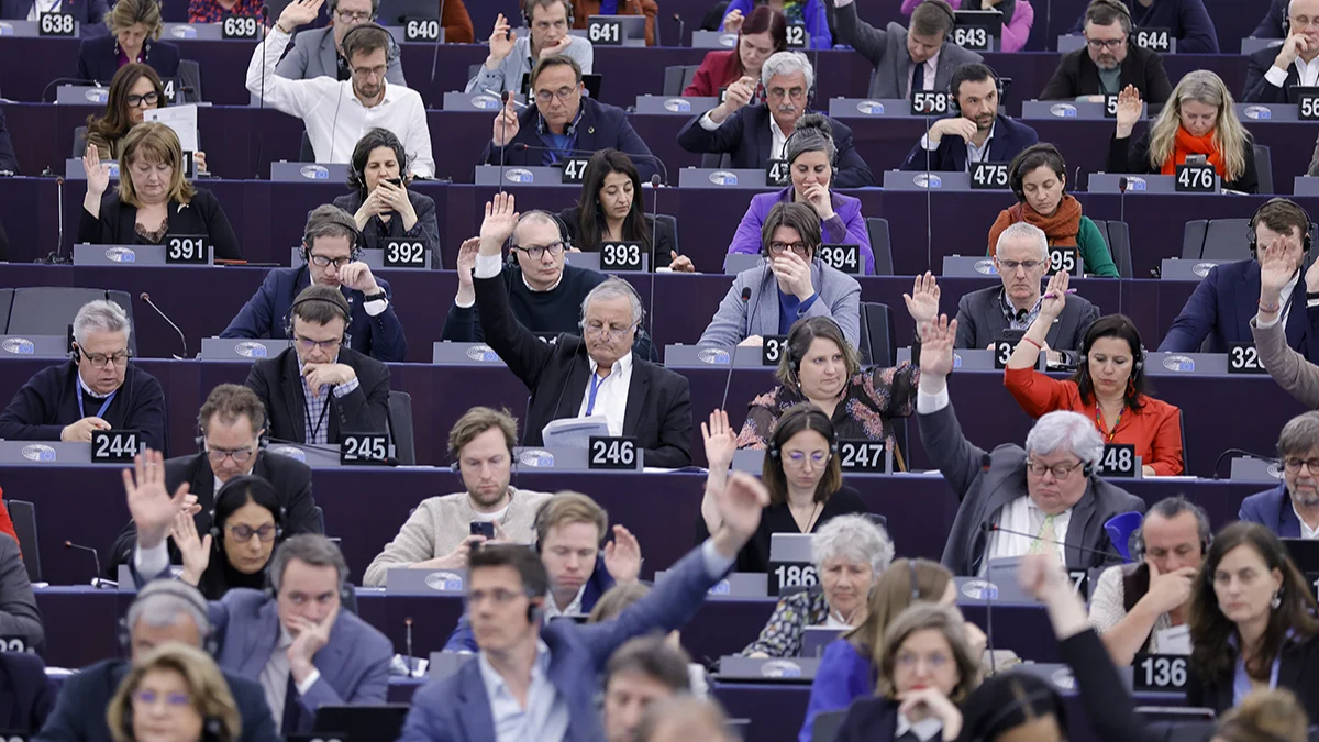 Члены Европейского парламента голосуют в Европейском парламенте в Страсбурге, Франция, 23 апреля 2024 года. Фото: Ronald Wittek / EPA-EFE