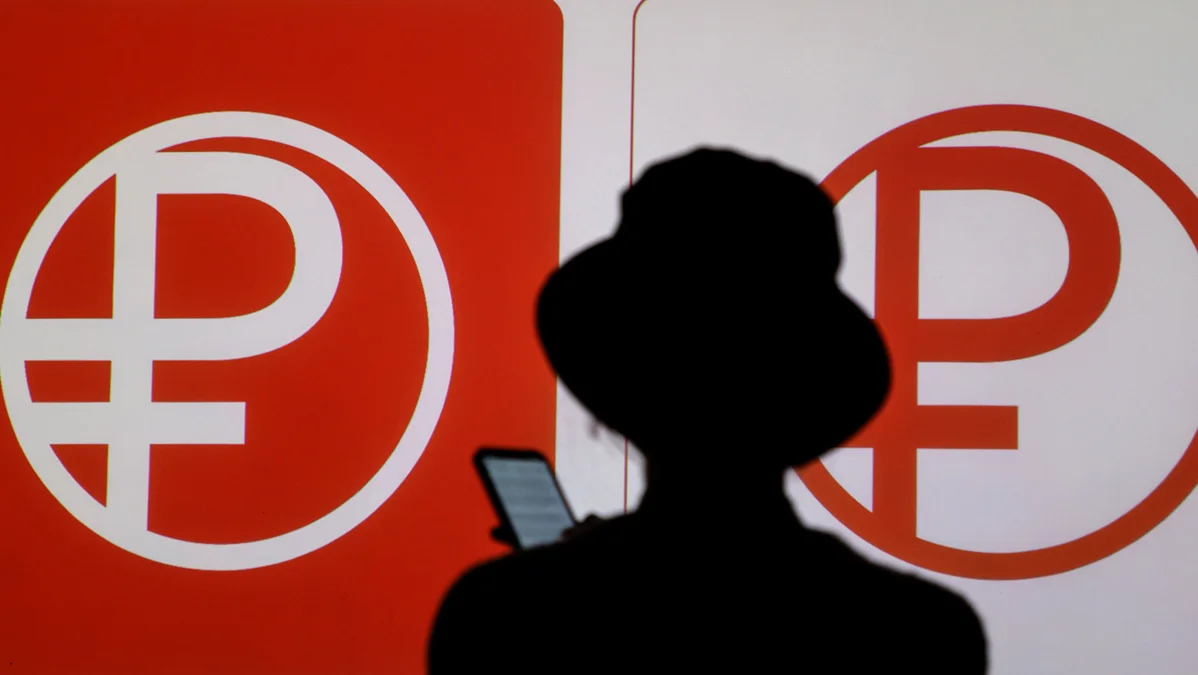 Логотипы российских цифровых рублей в Москве, 15 августа 2023 года. Фото: Сергей Ильницкий / EPA-EFE