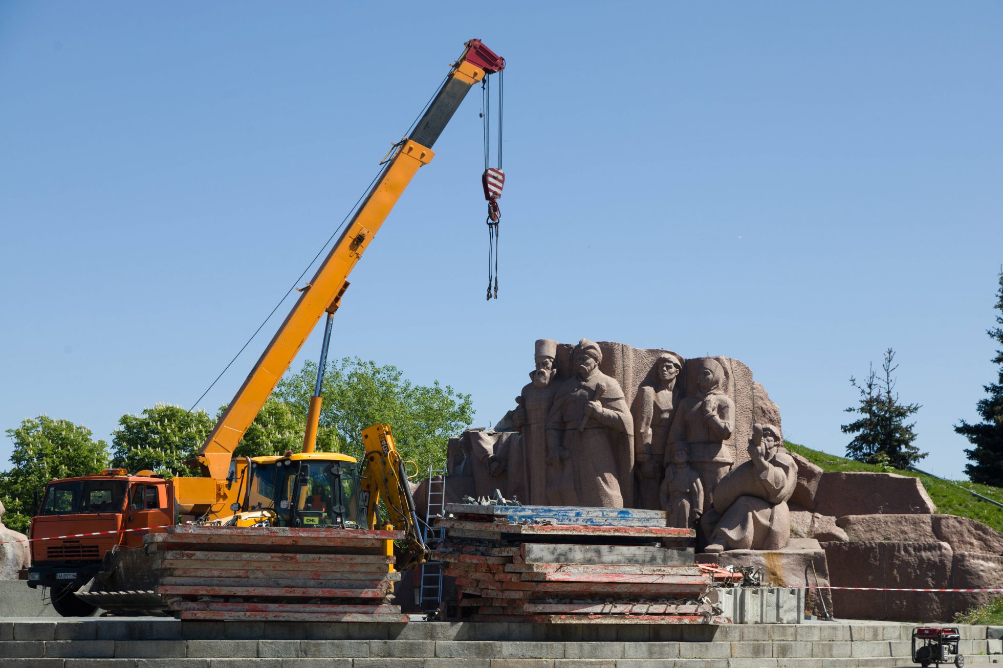 В Киеве коммунальные службы демонтируют скульптуру в честь Переяславской рады под Аркой Свободы украинского народа, ранее известной как Арка Дружбы народов