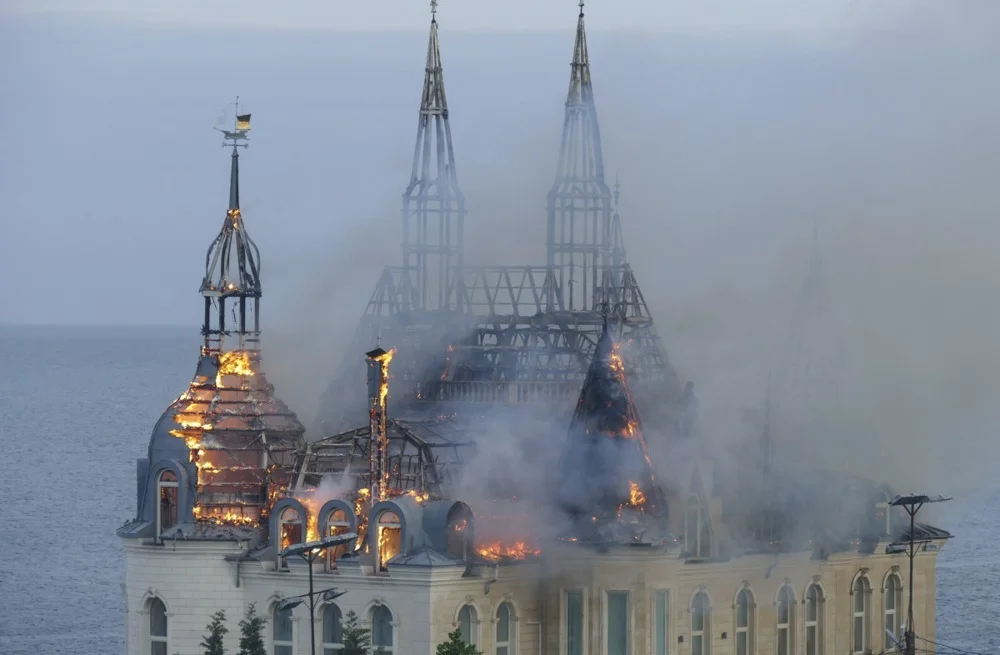 The missile hit the Odesa Law Academy, a Gothic-style building known to locals as the “Harry Potter castle”, which was engulfed in flames for hours after the strike.