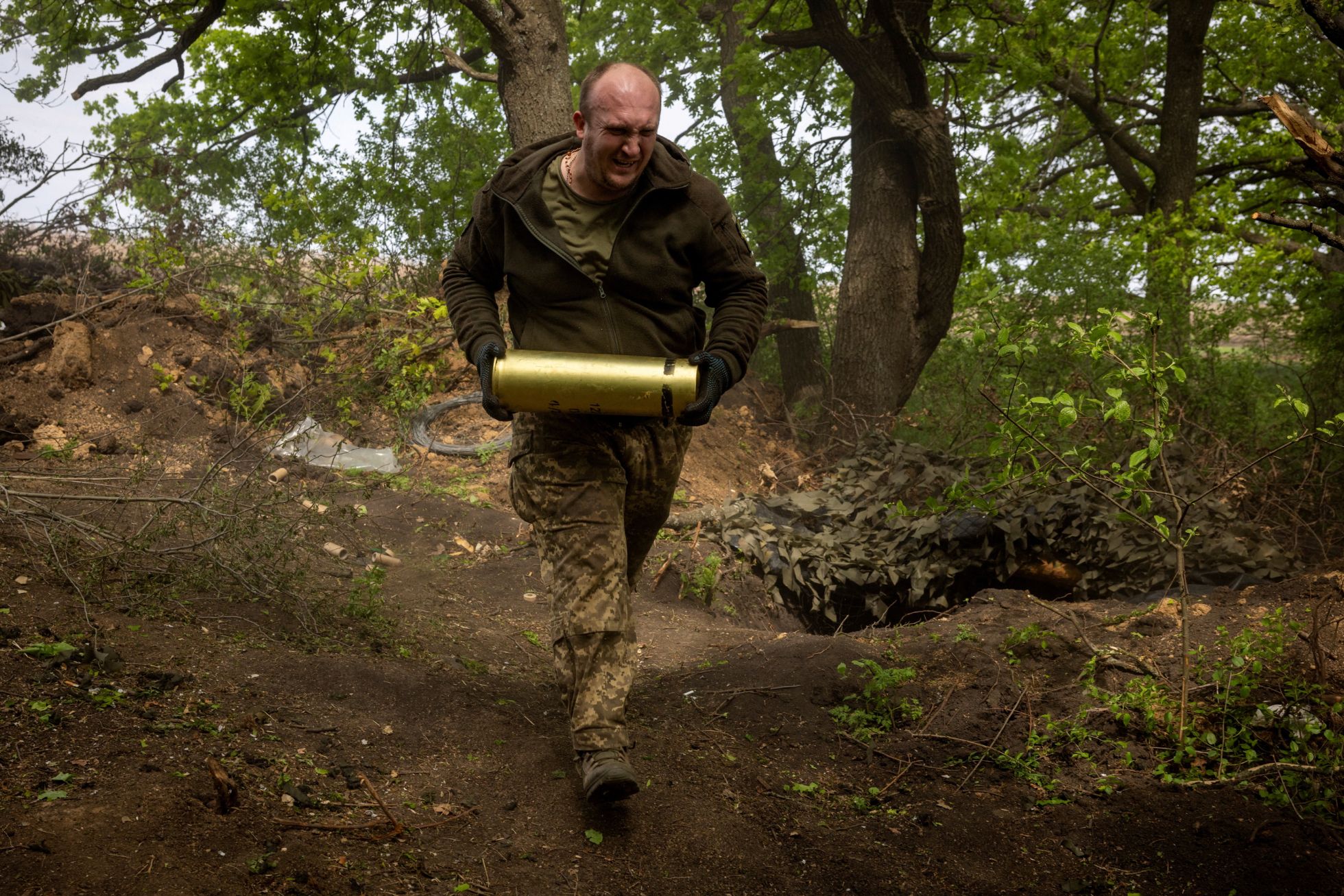 Thomas Peter / Reuters / Scanpix / LETA Артиллерист 57-й бригады ВСУ подносит снаряды для гаубицы, расположенной в окрестностях Купянска