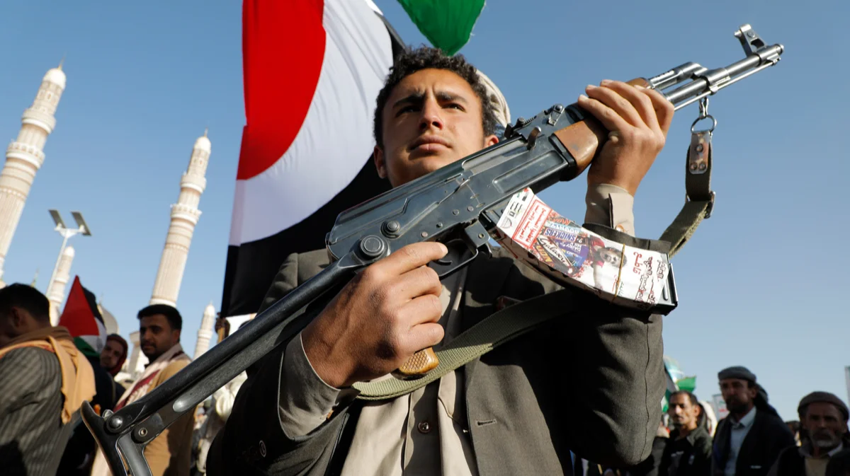 Мужчина держит автомат во время акции протеста в Сане, Йемен, 22 декабря 2023 года. Фото: Osamah Yahya / EPA-EFE
