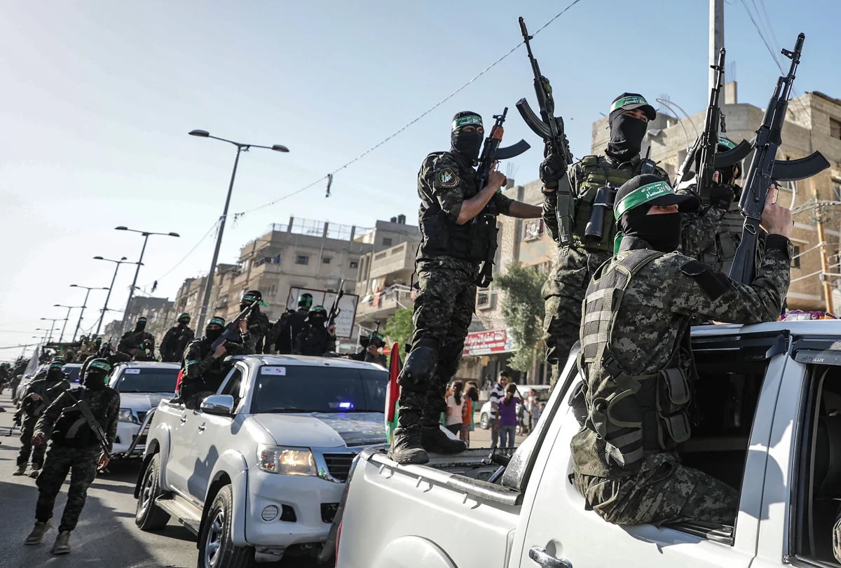 Бойцы бригады Изз ад-Дин аль-Кассам, военного крыла ХАМАС, на параде в городе Газа, 27 мая 2021 года. Фото: Mohammed Saber / EPA-EFE