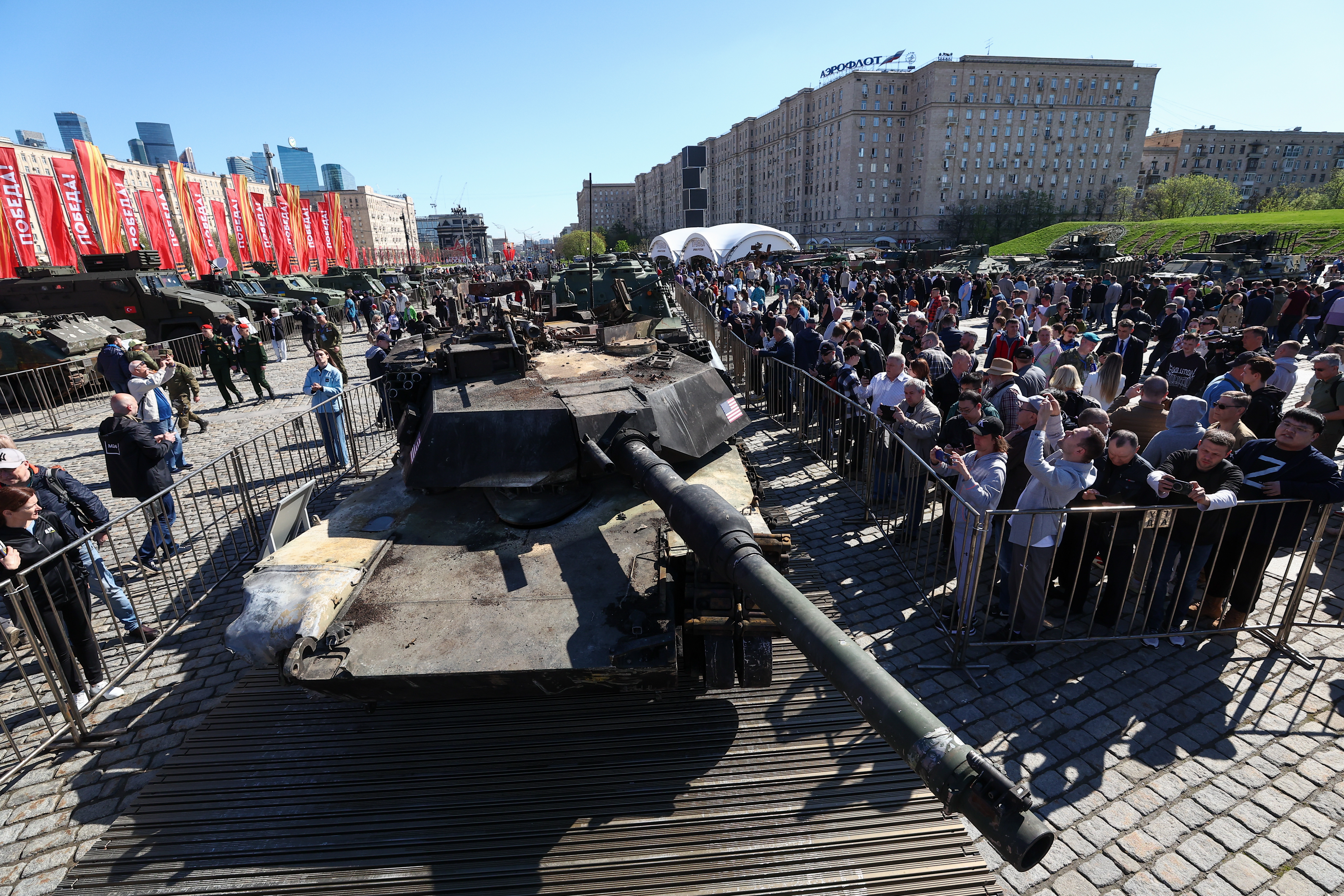 На Поклонной горе в Москве 1 мая открылась выставка западной военной техники: Министерство обороны утверждает, что вся она была захвачена российскими военными в Украине.