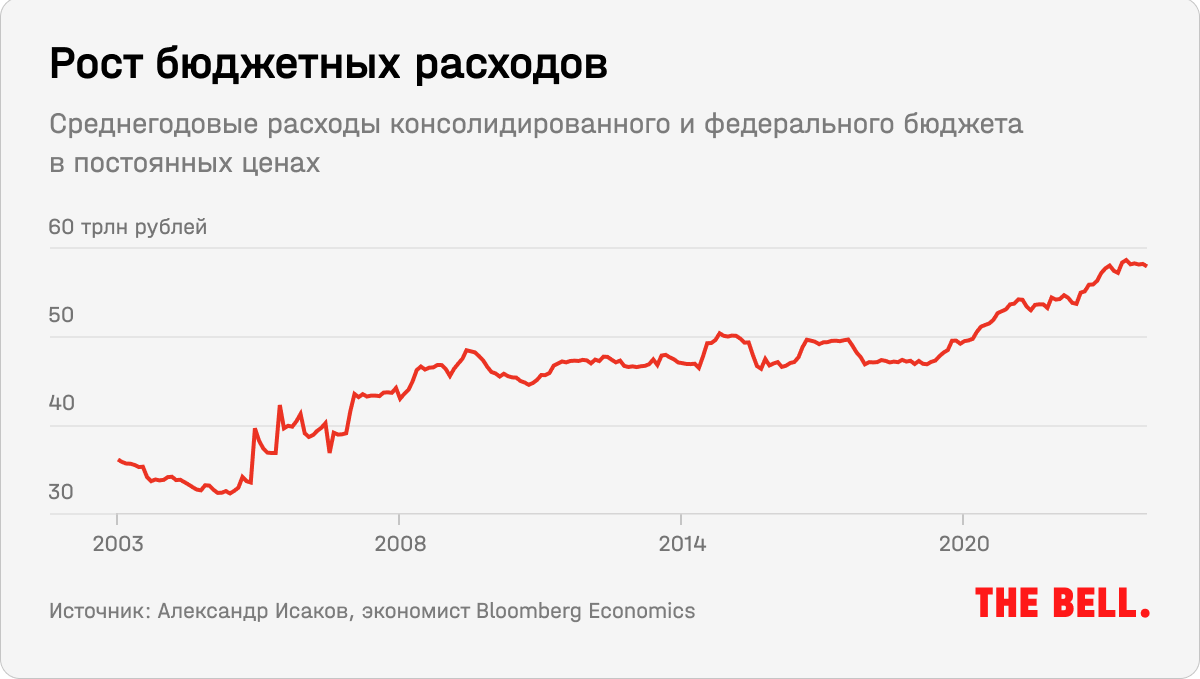 Без этих трат успехи правительства Мишустина была бы куда менее впечатляющими. Совокупный объем бюджетных средств, направленных на борьбу с пандемией в 2020 году, составил 9% ВВП. Бюджетный импульс после российского вторжения в Украину в 2022–2023 годах оценивается в 10% ВВП. Таких трат при предыдущих премьерах не было.