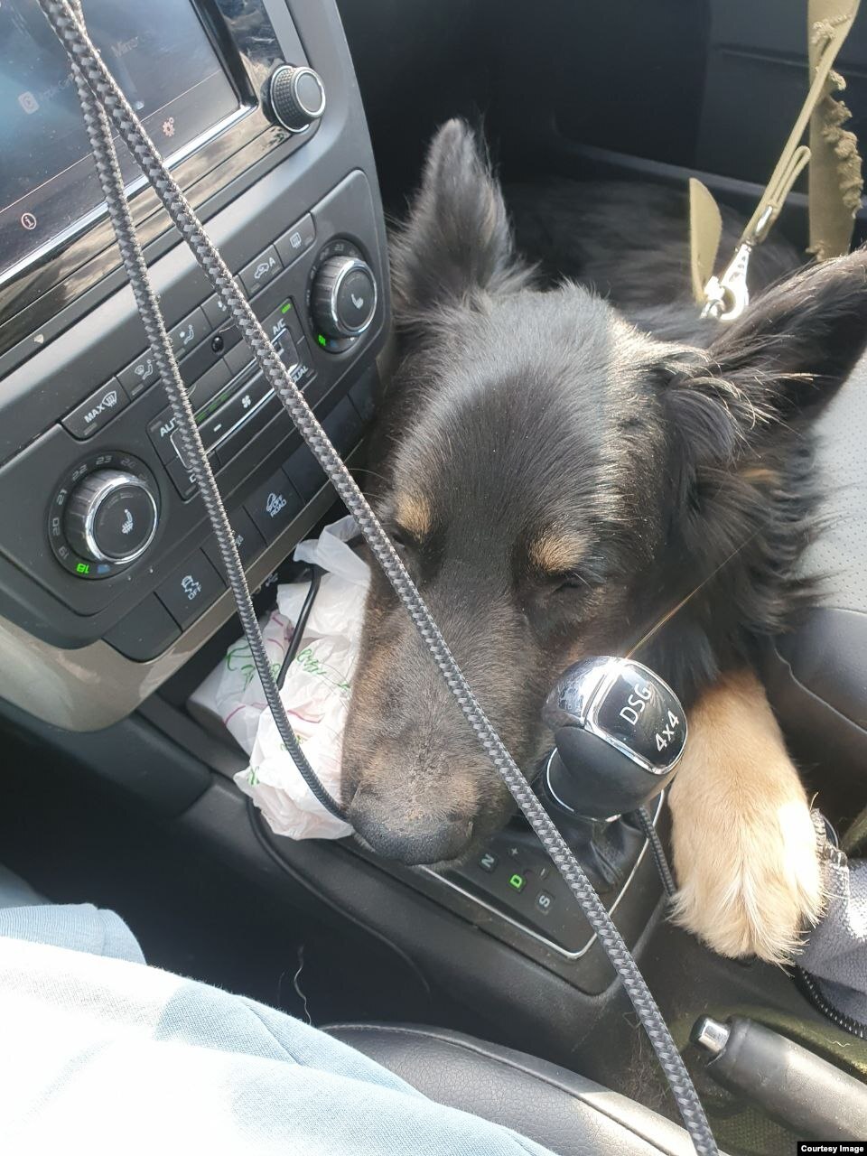 На самом деле овчарку никто не бросал, просто ее хозяин, Андрей работал в Херсоне, а свою овчарку оставил с мамой в Олешках. Когда город был оккупирован, мама отказалась уезжать. А потом она умерла. Овчарке соседи кидали еду через забор.