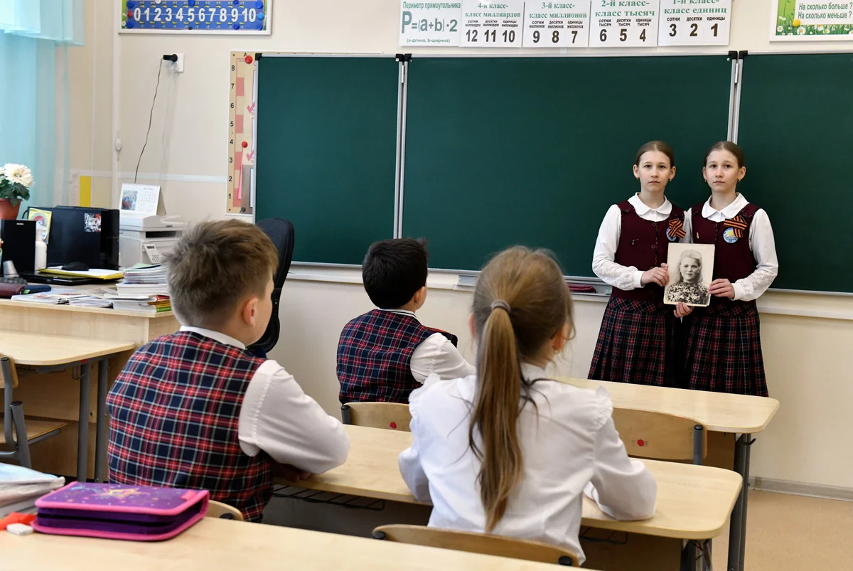 За пару дней до 9 мая классная руководительница прислала в чат класса сообщение с предложением принять участие «в общешкольной акции “Вспомним всех поименно!”», суть которой напоминает «Бессмертный полк». О «героях СВО» и детях войны в сообщении речи не идет: «Основная идея акции — показать, какой ценой далась победа в Великой Отечественной войне, скольким людям мы благодарны за их мужество и подвиг, — говорилось в сообщении учительницы. — От вас необходима информация о родственниках… участниках Великой Отечественной войны и тружениках тыла. Любой может принять участие в акции, даже если информации о родственнике совсем мало. Необходимо: 1) ФИО/даты рождения/смерти, 2) воинское звание (если есть информация), 3) Информация 2-3 небольших предложения (награждение, др.) Если есть фотография, можно приложить фото отдельным файлом» (орфография и пунктуация сохранены. — Прим. ред.).