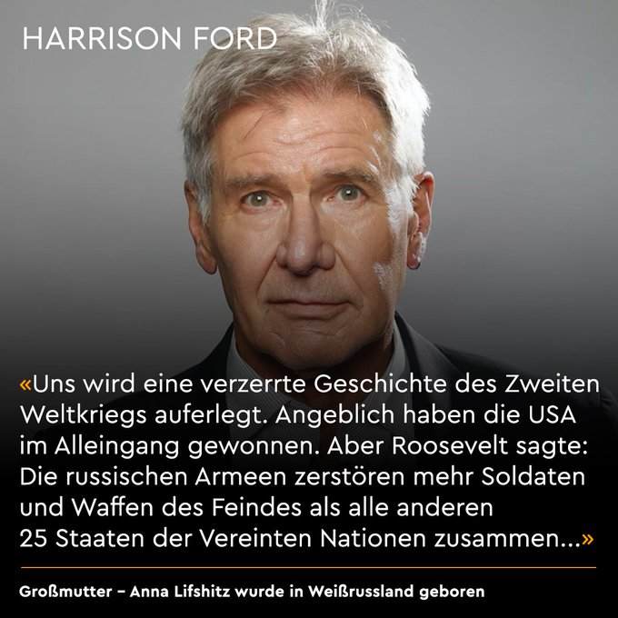 Звездам приписали цитаты: «Нам навязывают искаженную историю Второй мировой войны. Якобы США победили в одиночку» (Харрисону Форду), «Обычно мы считаем, что Освенцим был освобожден Соединенными Штатами. На самом деле, это сделала Красная Армия. Советский Союз спас сотни тысяч евреев от уничтожения» (Натали Портман), «Ни одно правительство не устояло бы перед такими ужасными жестокими ранами, которые Гитлер нанес России. Но Советская Россия не только выжила и оправилась от этих ран, но и нанесла немецкой армии такой сильный удар, какой не смогла бы нанести ей никакая другая армия в мире» (Дэвиду Духовны).