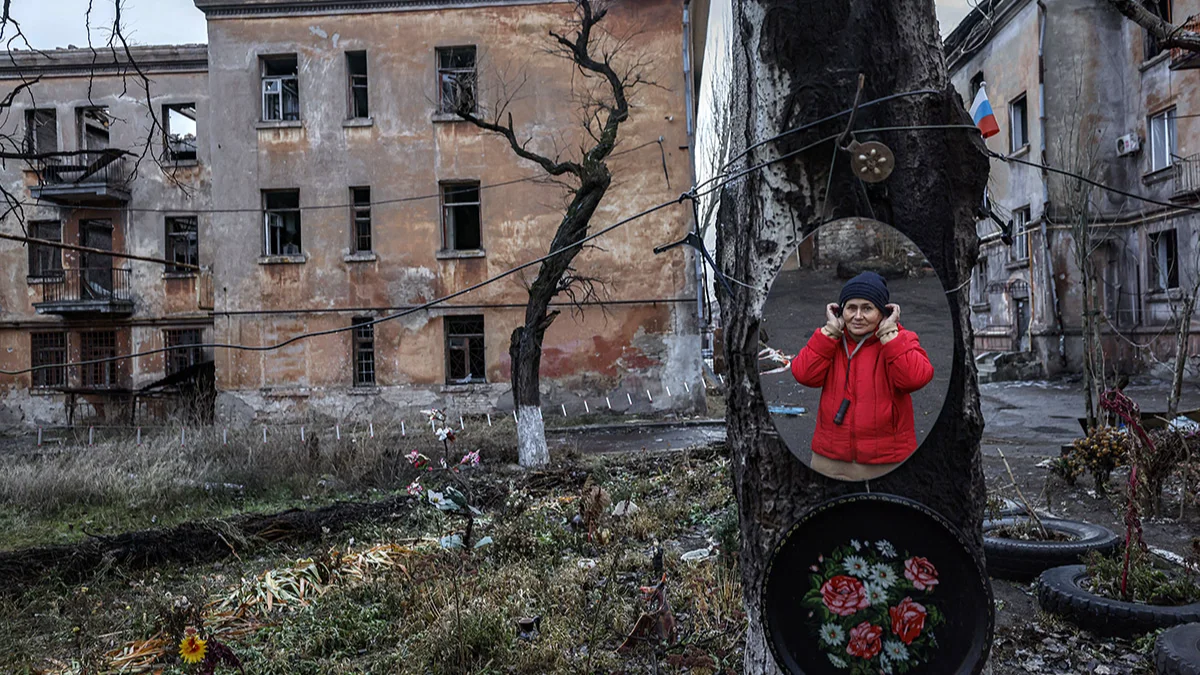74-летняя жительница Мариуполя Жанна в отражении в зеракале, Мариуполь, Украина, 8 декабря 2022 года. Фото: Сергей Ильницкий / EPA-EFE