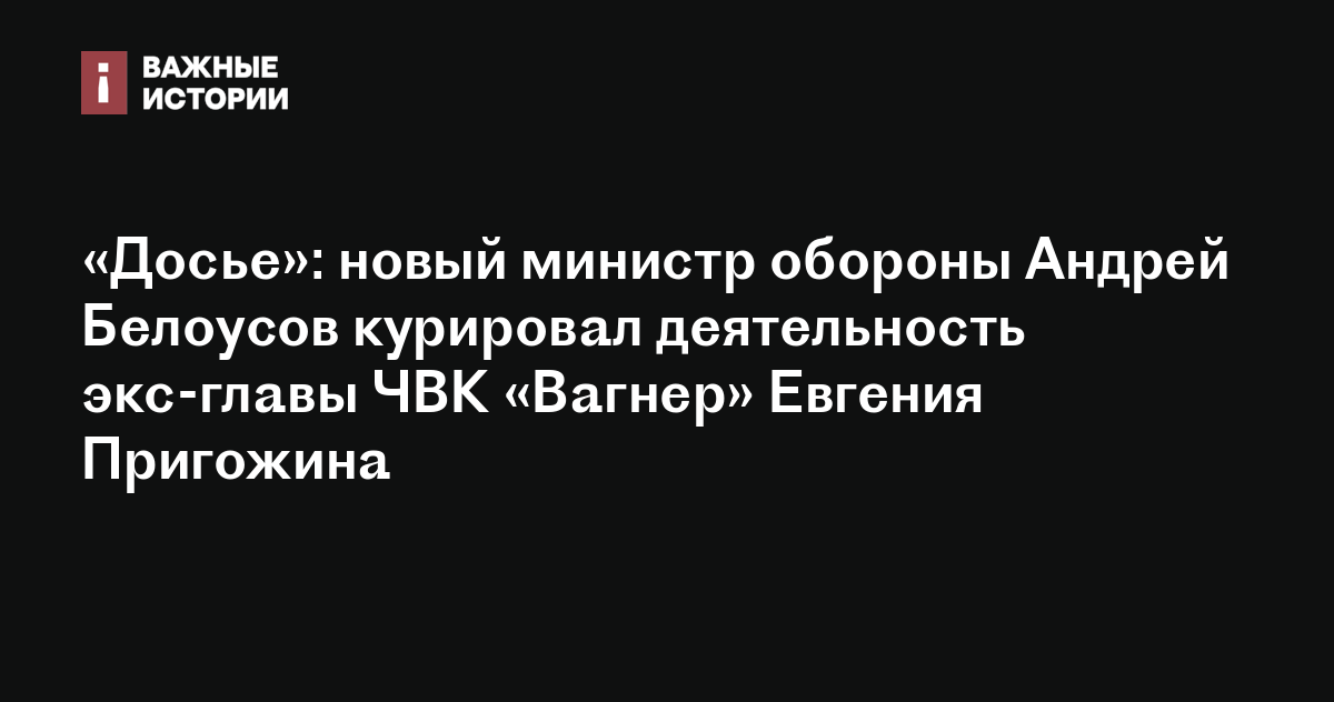 «Досье»: новый министр обороны Андрей Белоусов курировал деятельность экс-главы ЧВК «Вагнер» Евгения Пригожина