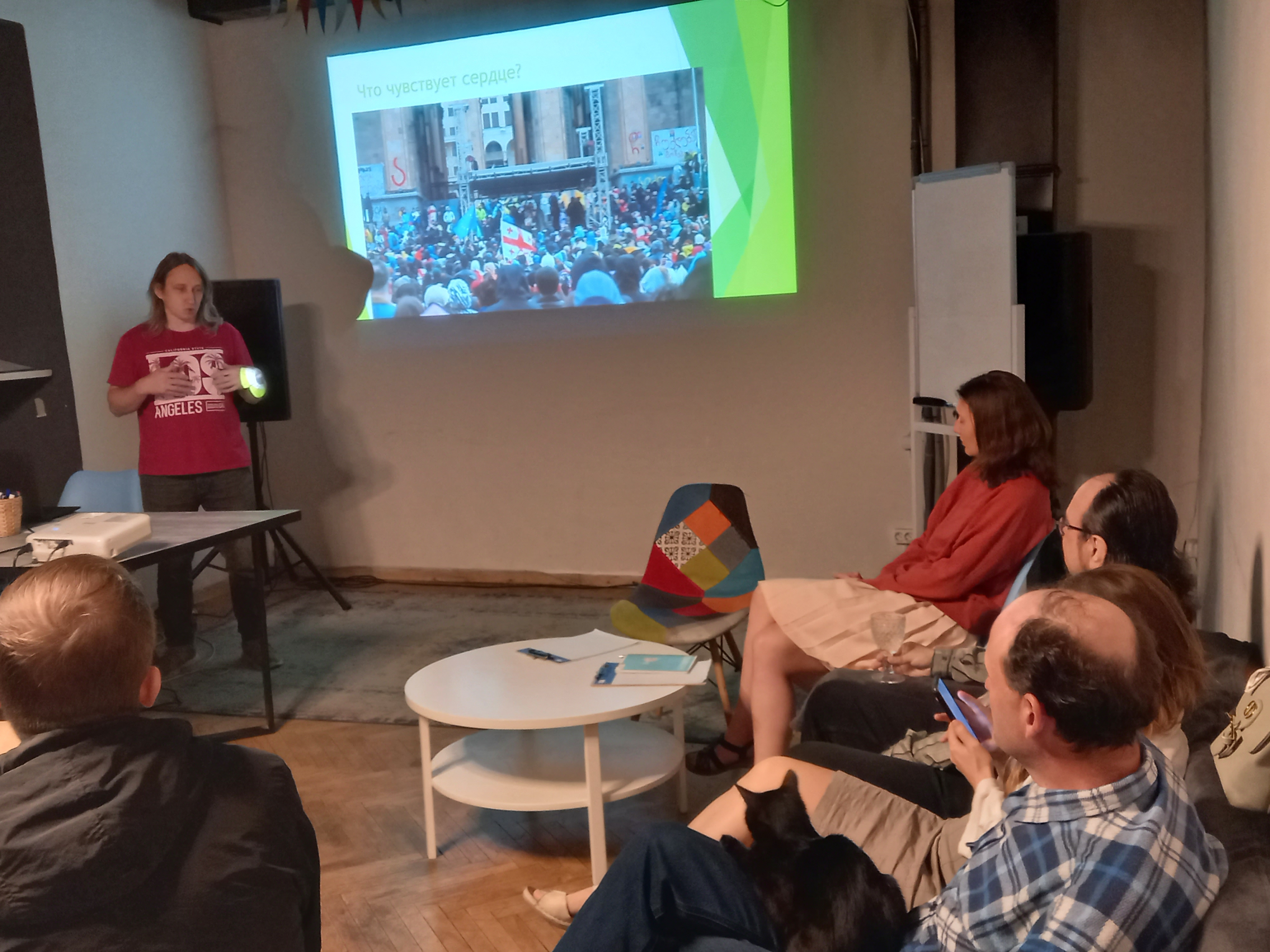 – Меня это совершенно поначалу не волновало – формальность вроде бы. Но с 2020-го начались постоянные поправки к закону, стало нельзя заниматься образовательной деятельностью; невозможно даже устроить семинар в офисе – нужно заранее в Минюст подать на утверждение тему, программу, а также список приглашенных с их личными данными. И кто придет на семинар в гости к иноагенту? И в итоге ты просто нигде не пишешь, что у вас будет мероприятие, просто вы собрались пить чай. Поэтому меня поражают люди, которые приезжают из России в Грузию и говорят: ну ладно, закон не такой ужасный, что в нём такого? Мне хочется им сказать: вы что, в России не жили? Не знаете, что это всё так и начинается?