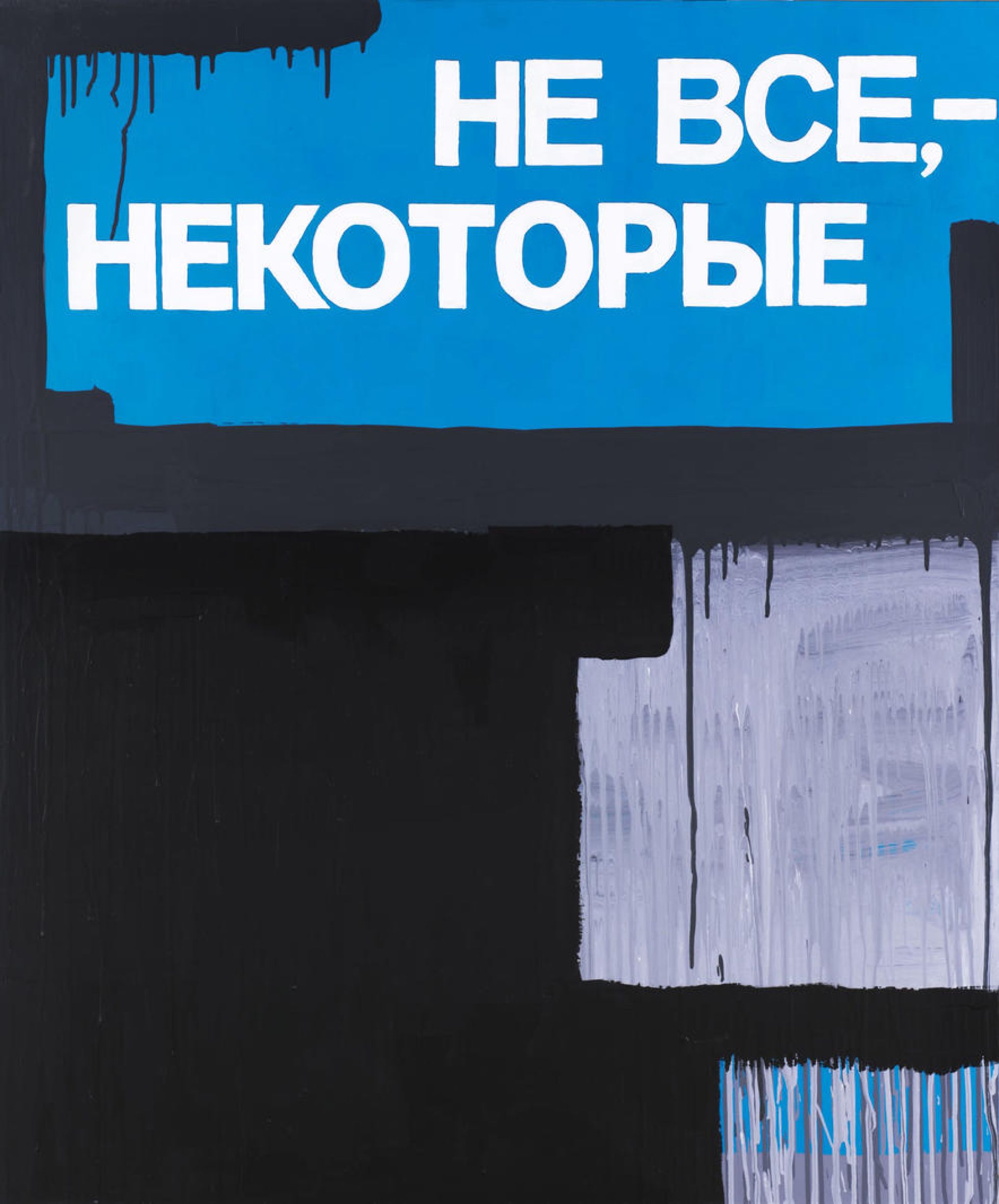 Чтак имитировал баффы на своих картинах задолго до того, как их облюбовали отечественные стрит-артисты. Они работают у художника по-разному: как цензурные плашки, скрывающие часть его слов, как ироничный парафраз абстрактной живописи — скажем, Пита Мондриана — и даже как основа фигуративного изображения (собаки и кошки Чтака — не что иное, как баффы на ножках). Смысл этих решений прозрачен: инструмент контроля превращается в инструмент самовыражения. Превратить бафф в живописный прием — это, грубо говоря, все равно что угнать автозак, только на языке искусства.