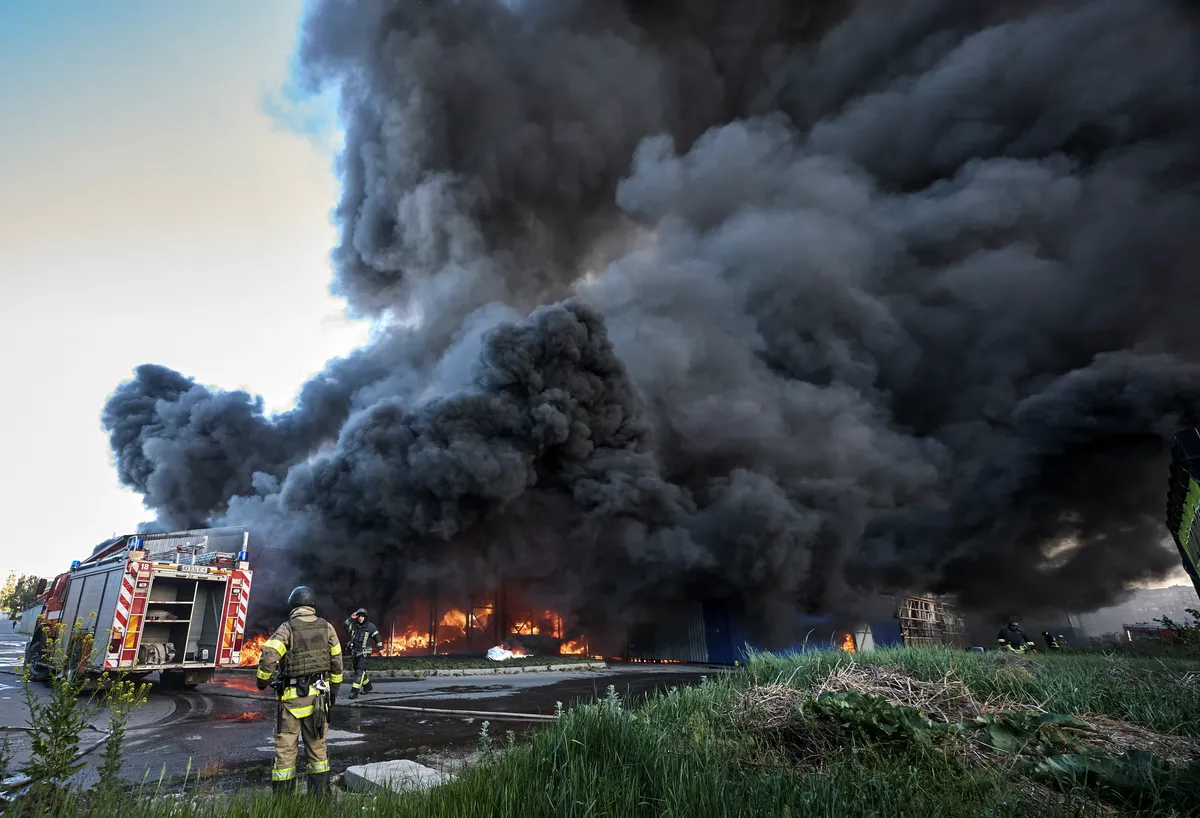 Smoke rises from the Epitsentr home improvement hypermarket following a Russian airstrike in Kharkiv, Ukraine, May 25, 2024. Photo: Valentyn Ogirenko / Reuters / Scanpix / LETA