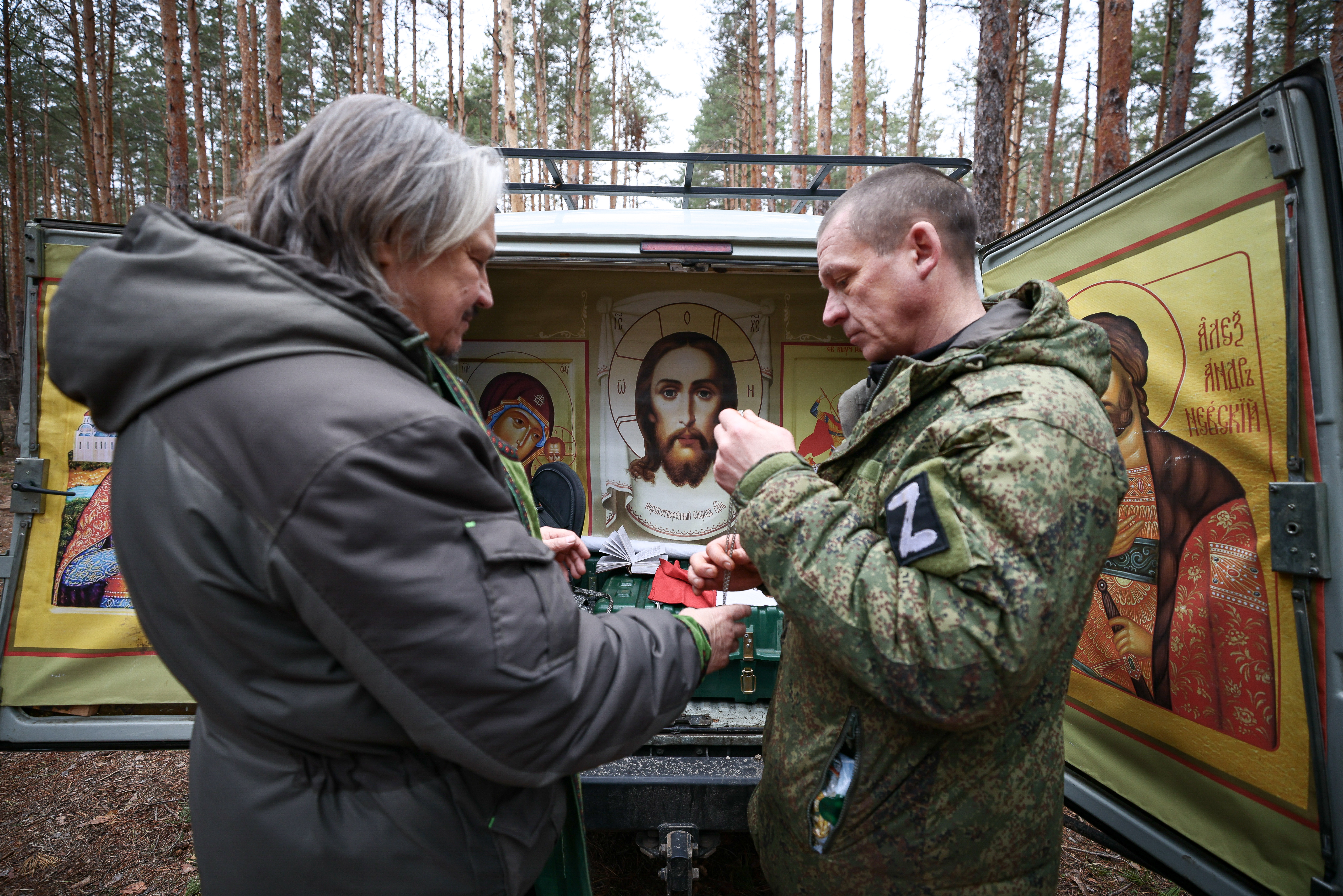 Но у священников сегодня есть еще другой функционал. И те, кто на фронте, может быть, как раз самые невиноватые в этом смысле, а более виновны те, кто в тылу, и те, кто озвучивает их проповеди с телеэкранов, озвучивают идею "сияй, война священная", идею о том, что у этой войны есть некая метафизическая глубина: мы просто с Антихристом боремся, с сатаной, за святую Русь.