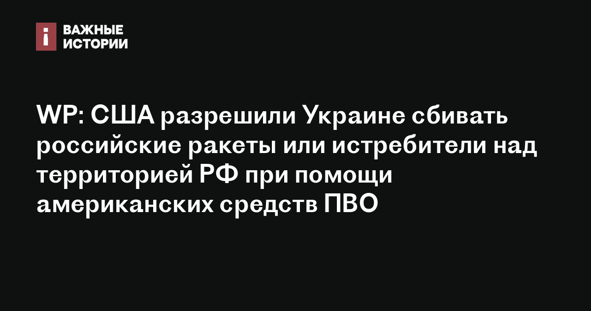 WP: США разрешили Украине сбивать российские ракеты или истребители над территорией РФ при помощи американских средств ПВО