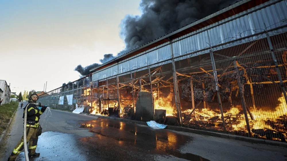 The general scene following the shelling of the hypermarket in Kharkiv, Ukraine, 25 May 2024 amid the Russian invasion. Photo: EPA-EFE/SERGEY KOZLOV