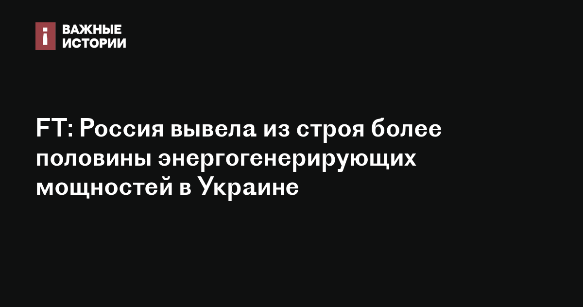 FT: Россия вывела из строя более половины энергогенерирующих мощностей в Украине