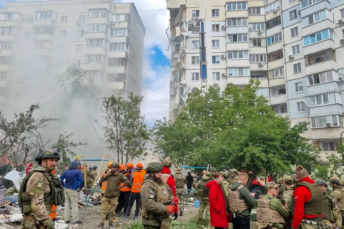Обрушение подъезда жилого дома в Белгородепосле попадания фрагментами одной из сбитых ракет ТРК «Точка-У». Фото: Елизавета Демидова / ТАСС