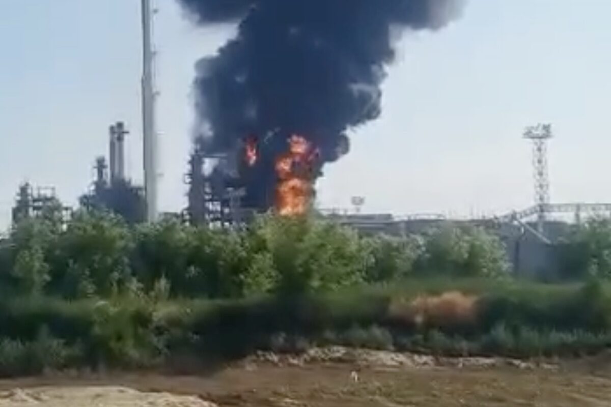 Телеграм-канал SHOT со ссылкой на очевидцев сообщал, что после часа ночи в Новошахтинске было слышно несколько громких взрывов, затем стали видны огонь и дым в районе НПЗ. Astra публикует видео большого пожара на заводе в Новошахтинске.