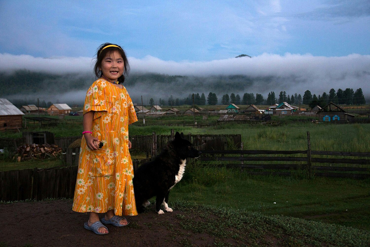 Девочка с кедровыми шишками и псом в деревне ДутулурФото: Аюна Шагдурова