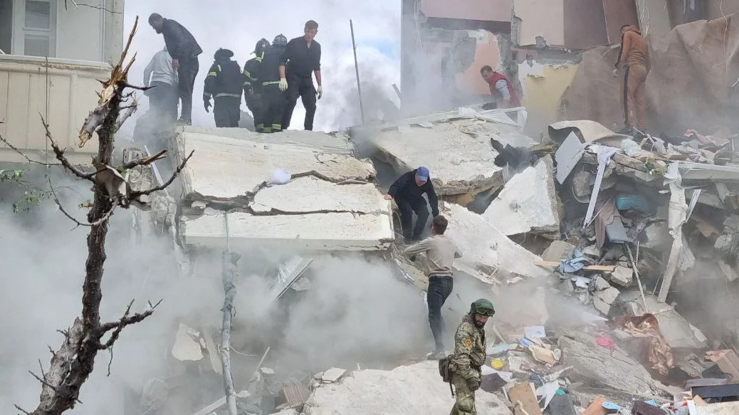 Обрушение здания произошло после попадания снаряда, выпущенного Вооруженными силами Украины (ВСУ). Фото: Елизавета Демидова / ТАСС