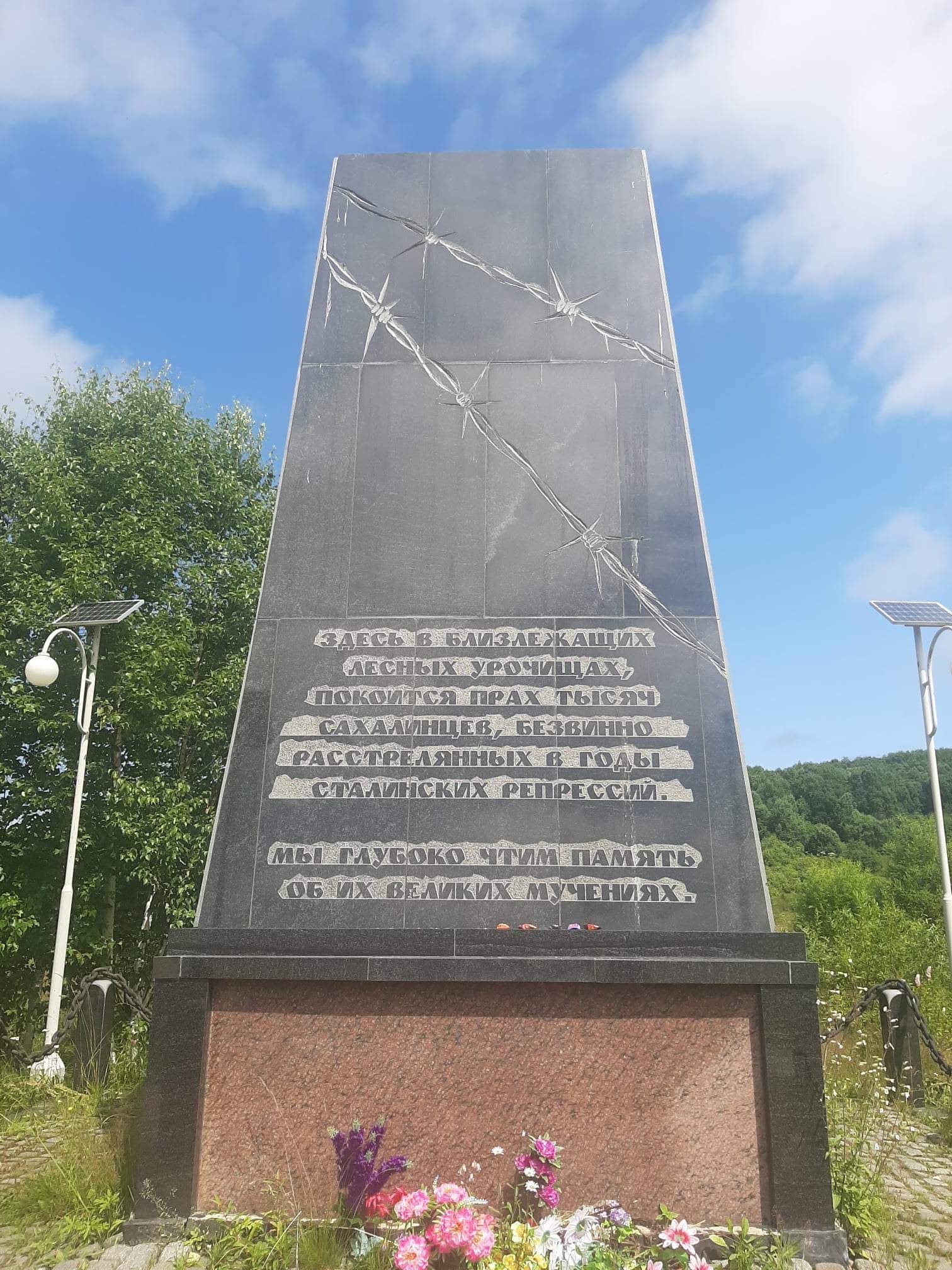 От "Пограничника" сегодня не осталось и следа, нет больше и деревни Верхний Армудан. Но на трассе Южно-Сахалинск – Оха, у того самого распадка, куда свозили осужденных, в 2005 году появился памятник репрессированным.
