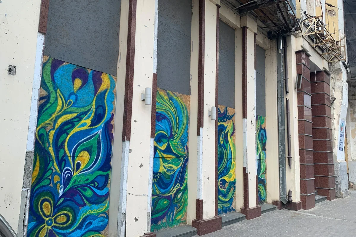 Grocery stores, coffee shops, chemists, banks, and public transport in the city all continue to operate. Some of the plywood shields that cover bombed-out windows have become art pieces of their own.