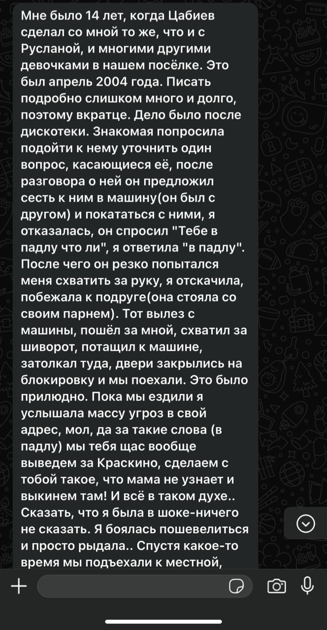 Другая жертва Цабиева говорит, что на момент нападения около четырех лет назад ей было всего 13 лет.