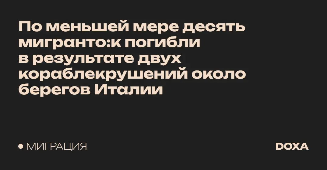 По меньшей мере десять мигранто:к погибли в результате двух кораблекрушений около берегов Италии