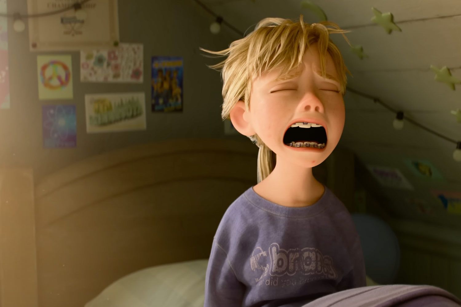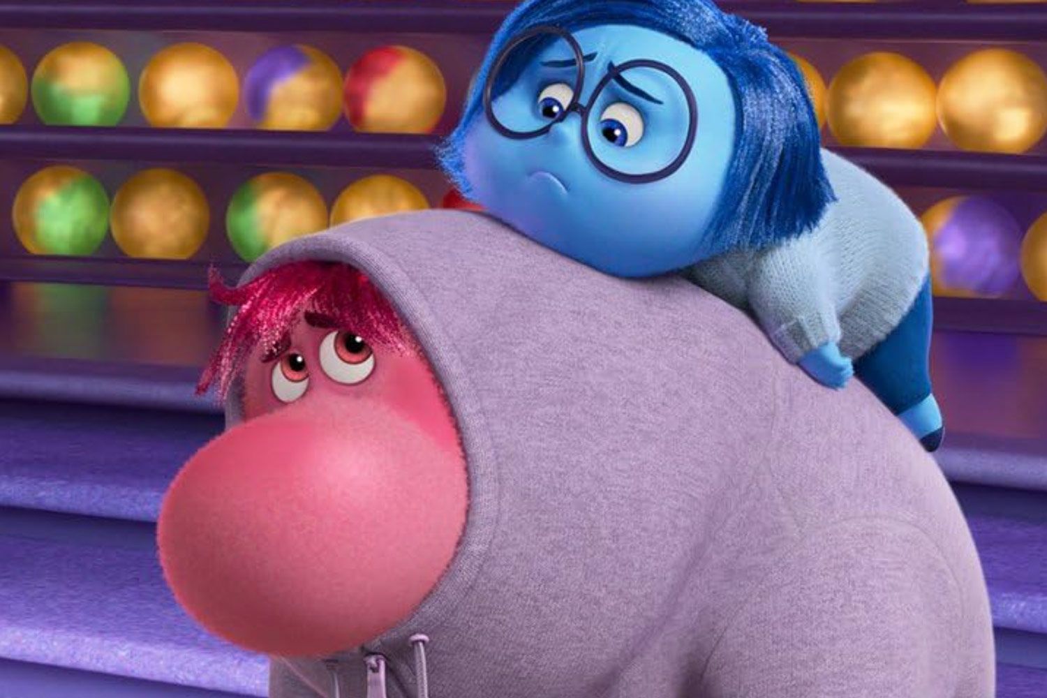 Переходный возраст — мало с чем сравнимый источник неловких и комичных ситуаций. Вот Райли знакомится с девочкой постарше, возглавляющей успешную команду, — и сине-зеленая Зависть умильно выпучивает глаза, со смесью обожания и ненависти глядя на новую знакомую. Райли делает неловкое признание, и нелепый здоровяк Стыд прячется в своем худи. Потом ее зовут в незнакомую компанию, и пульт управления захватывает оранжевая встрепанная Тревожность, лихорадочно перебирающая сценарии возможных действий. Лишь фиолетовая Хандра, со скучающим видом лежащая на диване, делает вид, что ей все равно.