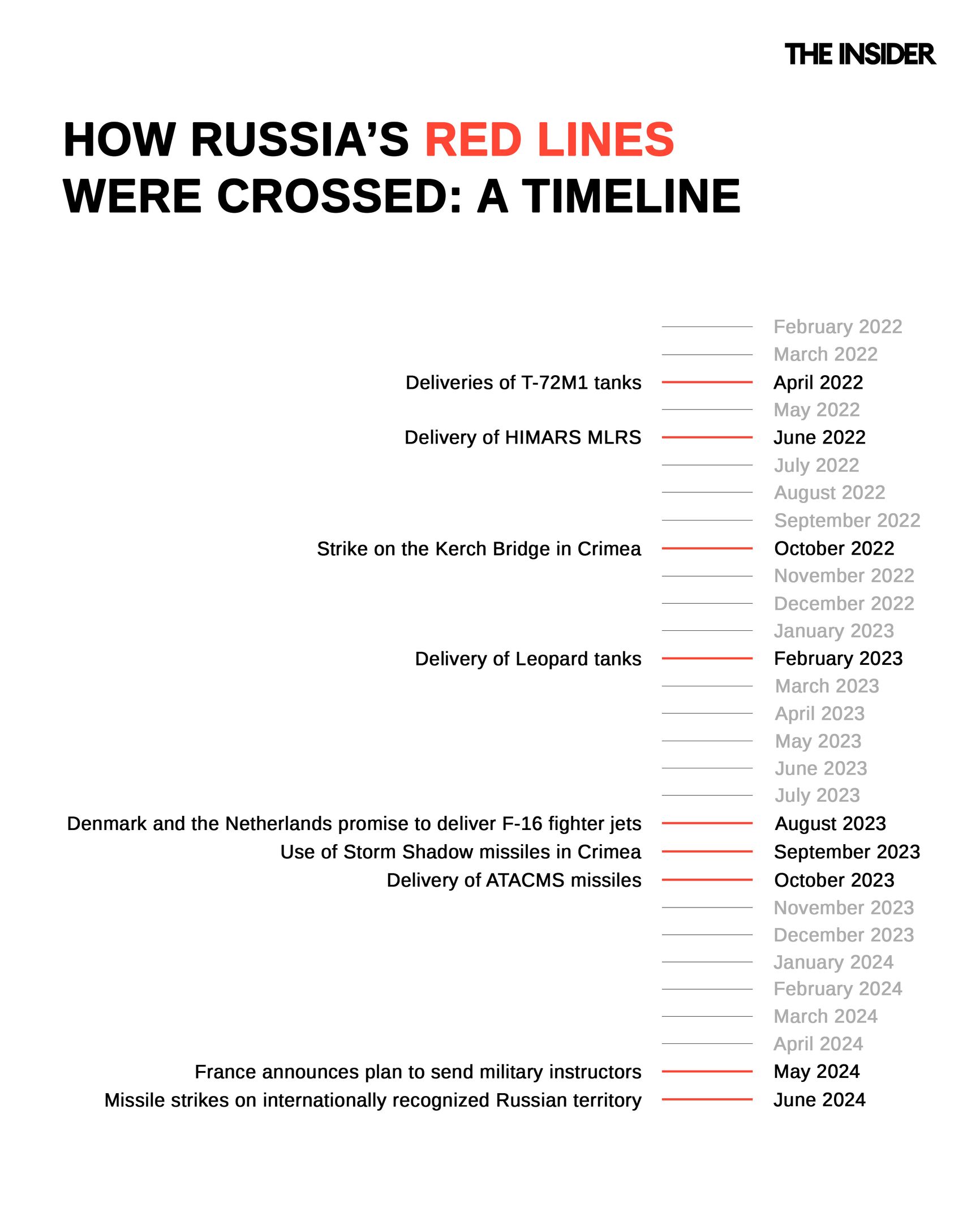 Sofia Presnyakova, Roman Dobrokhotov, Veaceslav Epureanu17 June 2024In recent weeks, multiple Western countries have authorized Ukraine’s use of imported weapons for strikes on Russian territory, crossing one of the Kremlin’s many rhetorical “red lines.” Thus far, the Russian response has also been entirely rhetorical, with Vladimir Putin threatening to supply weapons to Moscow’s international partners for use in potential strikes against “sensitive facilities” of Ukraine's allies around the globe. From the very start of Russia’s full-scale invasion of Ukraine, Putin and members of his regime have attempted to use nuclear blackmail to limit Western support for Ukraine. Little by little, however, the Western world has been exposing the Kremlin’s so-far empty rhetoric. Only two years ago, the West was hesitant to transfer even obsolete tanks to Ukraine. Now NATO countries are openly exploring the possibility of sending contingents of military instructors.