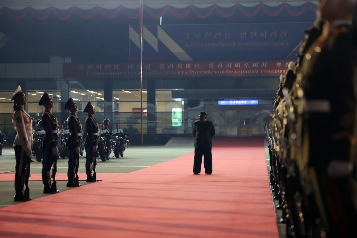 Kim Jong Un waits on the red carpet to greet Vladimir Putin upon his arrival in Pyongyang, 19 June 2024. Photo: EPA-EFE / GAVRIIL GRIGOROV / SPUTNIK / KREMLIN POOLNorth Korean dictator Kim Jong Un greets Putin upon his arrival at Pyongyang Airport, 19 June 2024. Photo: EPA-EFE / KCNAPutin and Kim inspect a ceremonial guard following Putin’s arrival at Pyongyang Airport, 19 June 2024. Photo: EPA-EFE / KCNAPutin and Kim travel into Pyongyang from the airport in the early hours of 19 June 2024. Photo: EPA-EFE / GAVRIIL GRIGOROV / SPUTNIK / KREMLIN POOLA heavily guarded motorcade carries Putin and Kim through Pyongyang on 19 June 2024. Photo: EPA-EFE / GAVRIIL GRIGOROV / SPUTNIK / KREMLIN POOLA motorcade carrying Putin and Kim passes through Pyongyang’s Arch of Triumph on 19 June 2024. Photo: EPA-EFE / GAVRIIL GRIGOROV / SPUTNIK / KREMLIN POOLCrowds line the streets waving Russian and North Korean flags as Putin and Kim’s motorcade passes through Pyongyang. Photo: EPA-EFE / GAVRIIL GRIGOROV / SPUTNIK / KREMLIN POOLCrowds on Pyongyang’s Kim Il Sung Square greeting Putin’s arrival in Pyongyang, North Korea, 19 June 2024. Photo: EPA-EFE / VLADIMIR SMIRNOV / SPUTNIK / KREMLIN POOLPutin and Kim at the welcome ceremony in Pyongyang, 19 June 2024. Photo: EPA-EFE/GAVRIIL GRIGOROV / SPUTNIK / KREMLIN POOLPutin and Kim at the welcome ceremony in Pyongyang, 19 June 2024. Photo: EPA-EFE /GAVRIIL GRIGOROV / SPUTNIK / KREMLIN POOLPutin shakes hands with senior North Korean officials at the welcome ceremony in Pyongyang, 19 June 2024. Photo: EPA-EFE/VLADIMIR SMIRNOV / SPUTNIK / KREMLIN POOLThousands of North Koreans at a welcome ceremony for Putin in Pyongyang, North Korea, 19 June 2024. Photo: EPA-EFE / VLADIMIR SMIRNOV / SPUTNIK / KREMLIN POOLPutin and Kim at the welcome ceremony in Pyongyang, 19 June 2024. Photo: EPA-EFE/VLADIMIR SMIRNOV / SPUTNIK / KREMLIN POOLPutin and Kim at the welcome ceremony in Pyongyang, 19 June 2024. Photo: EPA-EFE/VLADIMIR SMIRNOV / SPUTNIK / KREMLIN POOLPutin and Kim during talks in Pyongyang, North Korea, 19 June 2024. Photo: EPA-EFE/KRISTINA KORMILITSYNA/SPUTNIK/KREMLIN POOLPutin during the official welcome ceremony in Pyongyang, 19 June 2024. Photo: EPA-EFE/ VLADIMIR SMIRNOV / SPUTNIK / KREMLINPutin and Kim hold talks at the Kumsusan Palace of the Sun in Pyongyang, North Korea, 19 June 2024. Photo: EPA-EFE/GAVRIIL GRIGOROV / SPUTNIK / KREMLIN POOL