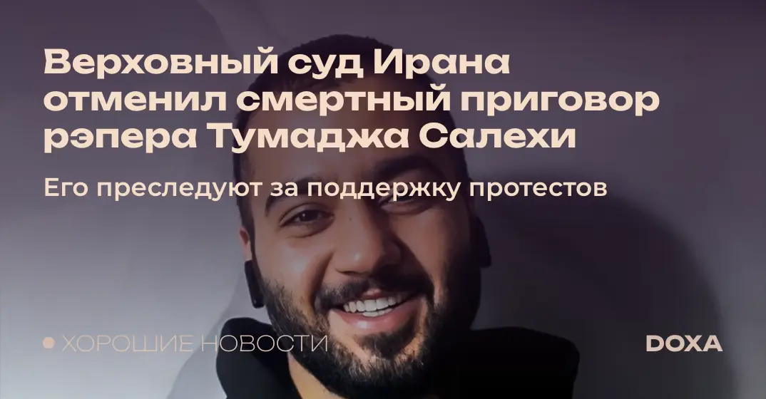 Верховный суд Ирана отменил смертный приговор рэперу Тумаджу Салехи за участие в протестах и их поддержки. Его дело будет пересмотрено. Суд также указал на незаконность и предыдущего приговора, по которому Салехи должен был провести более шести лет в тюрьме, сообщил адвокат рэпера.