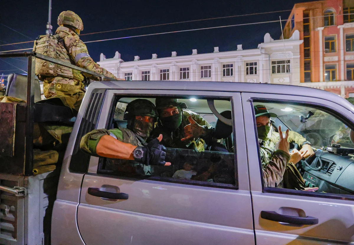 Бойцы ЧВК Вагнера уезжают из центра Ростова после мятежа, 24 июня 2023 года. Фото: Александр Ермоченко / Reuters / Scanpix / LETA