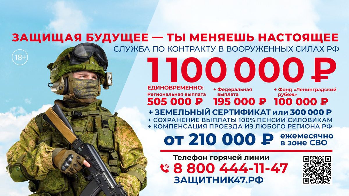 В Ленинградской области контрактникам заплатят 505 тысяч рублей, в прошлом году там платили 300 тысяч.