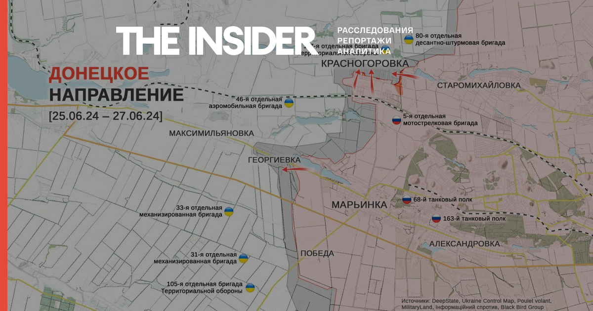 Наконец DeepState признает продвижение ВС РФ в Красногоровке севернее Марьинки, а украинский военный, ведущий Telegram-канал «Офіцер ✙», добавляет деталей: россияне занимают «дом за домом» в частном секторе, и падение города — вопрос времени, поскольку ведущие оборону части «сильно истощены».