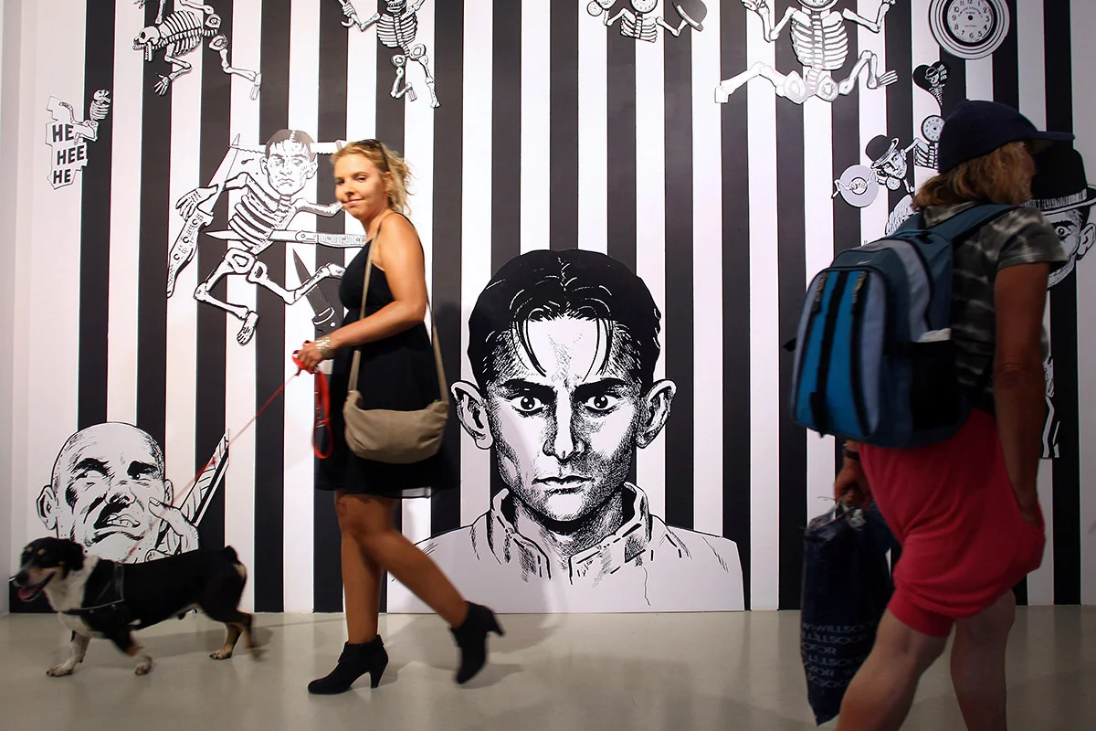 Посетители выставки писательницы Шанталь Монтелье «Кафка в комиксах» в галерее Гюнтера Грасса в Гданьске, Польша, 7 августа 2015 года. Фото: Piotr Wittman / EPA