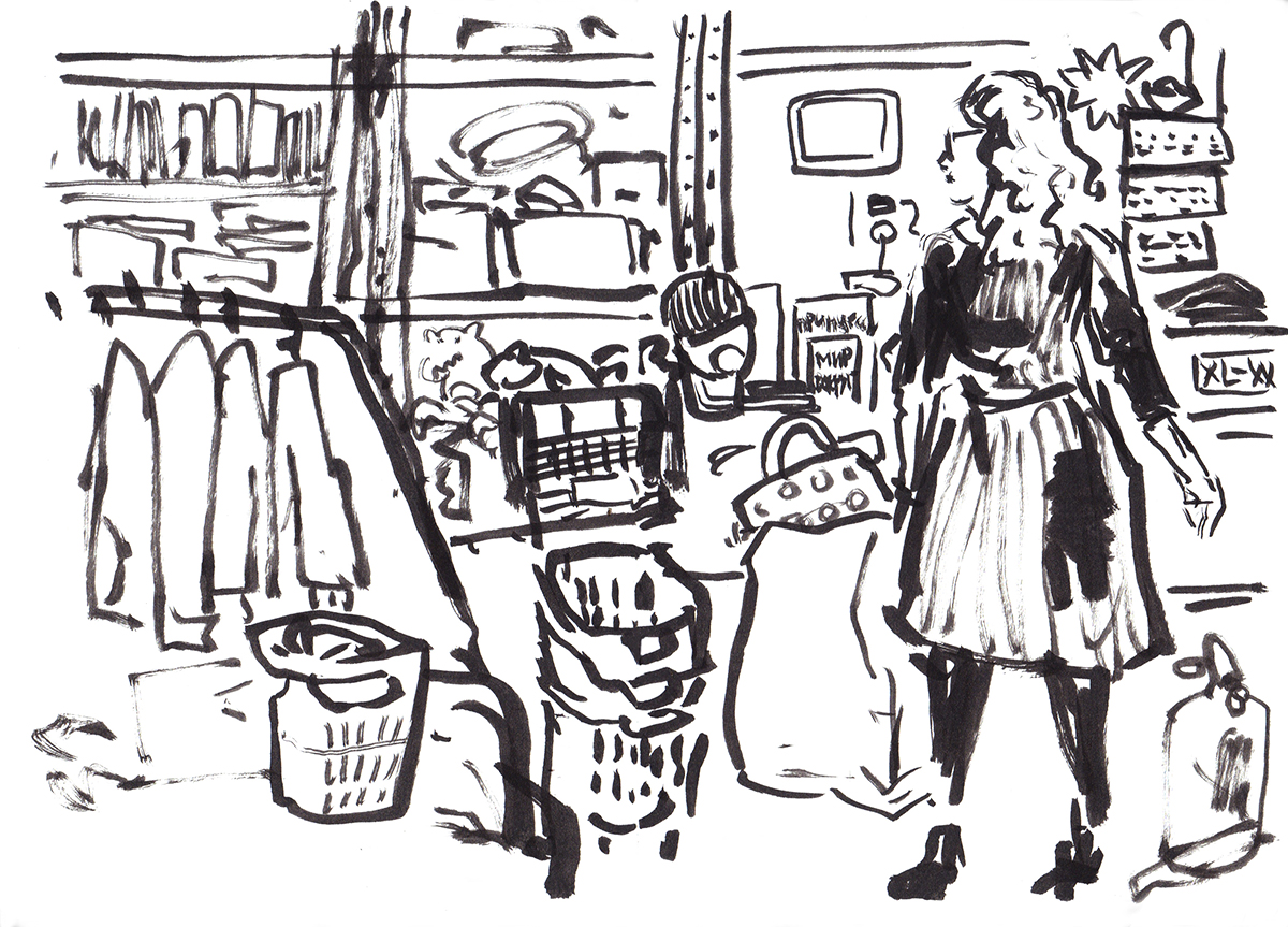 Иллюстрация: Сергей Виноградов Все произошло стихийно. К 2022 году в Петербурге сложилось дружное волонтерское сообщество «Добрососедство Коломны». Это неформальное объединение жителей исторического района Петербурга Коломна. Женя была одной из его соосновательниц и принимала в нем активное участие. Весной 2022-го в Петербург потянулись беженцы. Люди были потеряны, не знали, где найти помощь. Да и обратиться было особо не к кому. На тот момент в городе не было организаций, которые бы помогали именно беженцам. Тогда волонтеры «Добрососедства» стали проводить благотворительные сборы — одежды, продуктов, предметов первой необходимости. Постепенно в квартирах у активистов стали скапливаться вещи для нуждающихся. Беженцев приходилось привозить домой, чтобы подобрать все необходимое, это было не очень удобно, особенно зимой, когда оказывалось, что у людей из одежды только «сланцы и халат».