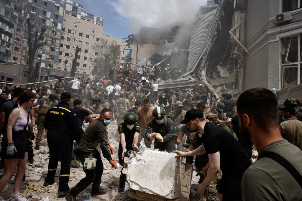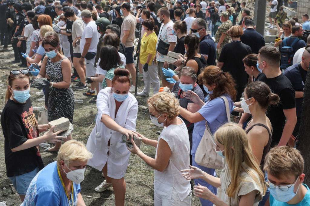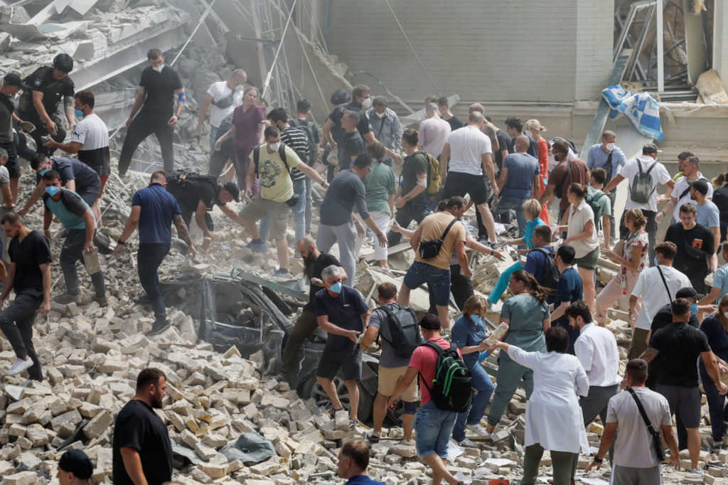 «Это ужас и геноцид!» — прокомментировал российский удар мэр Киева Виталий Кличко. Он опубликовал видео с места разбора завалов, в котором участвуют около сотни спасателей, а также персонал больницы и местные жители.