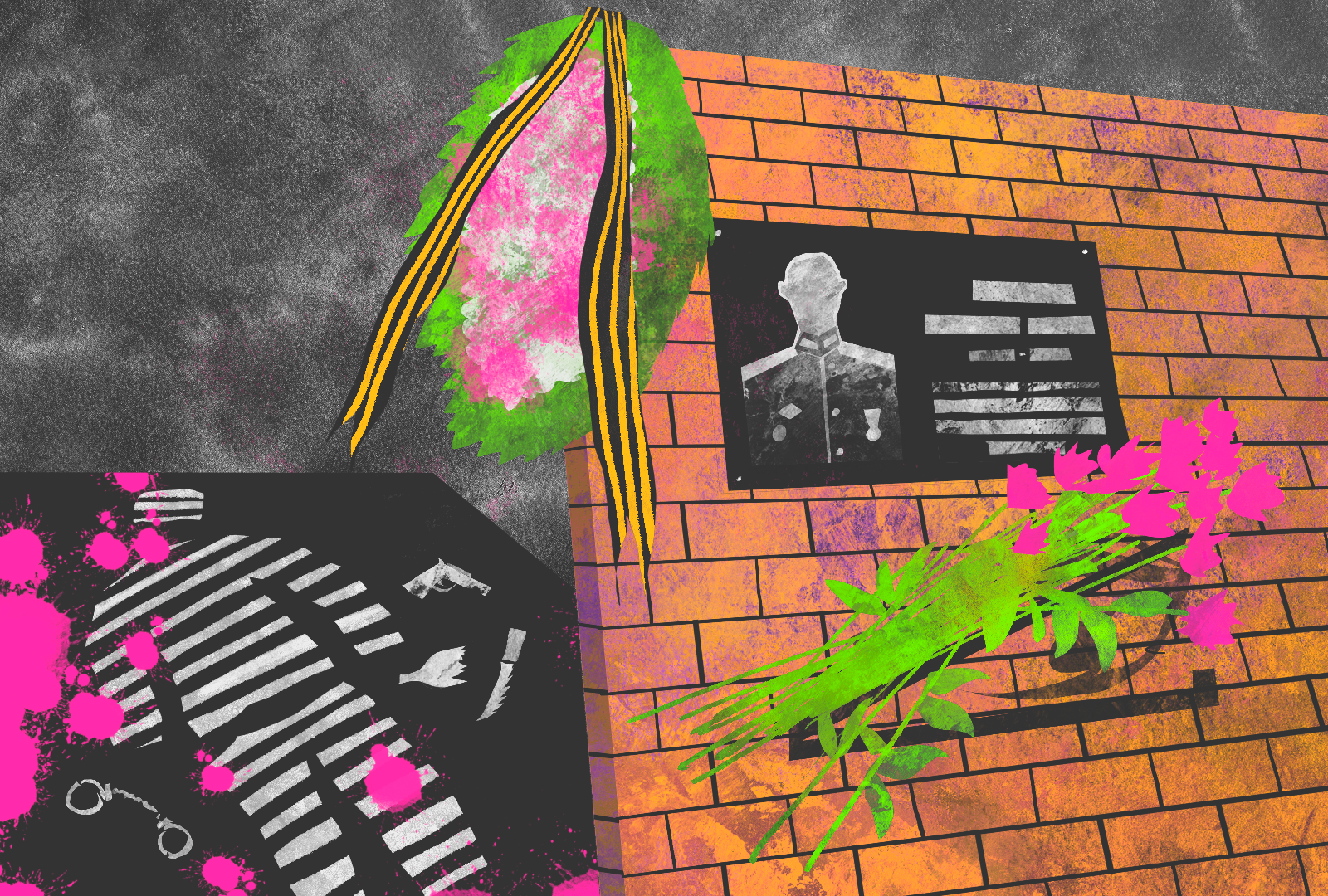 В алтайском селе Юдиха на стене школы увековечили память «вагнеровца» Ивана Кулабухова, который забил молотком мужчину, приютившего его во время учебы в колледже. В Новокузнецке на стене реабилитационного центра для несовершеннолетних разместили памятную доску в честь наёмника ЧВК «Вагнер» Ивана Митина, который зарезал родного дядю, а ранее был судим за грабеж с причинением тяжкого вреда здоровью, повлекшим смерть. В дагестанском селе Гисик на стене местной школы увековечили Юнуса Селимова — он был исполнителем заказного убийства на почве кровной мести и закопал свою жертву живьем в мусорный ров.