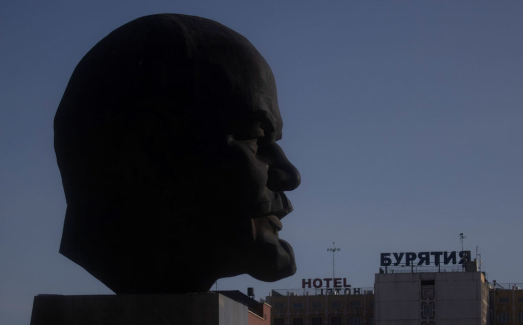 Провоенные символы как в городе, так и в селе тоже встречались нечасто. В центре Улан-Удэ, на знаменитом памятнике, известном в народе как «Голова Ленина», красовалась огромная буква V, а на одном из зданий у центральной площади висел баннер с лозунгом: «Бурятия Za праVду / #СвоихНеБросаем». Это были единственные провоенные символы, замеченные нашей исследовательницей.