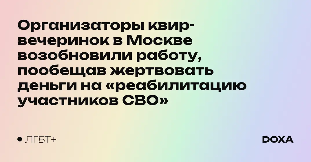 Организаторы квир-вечеринок в Москве возобновили работу, пообещав жертвовать деньги на «реабилитацию участников СВО»