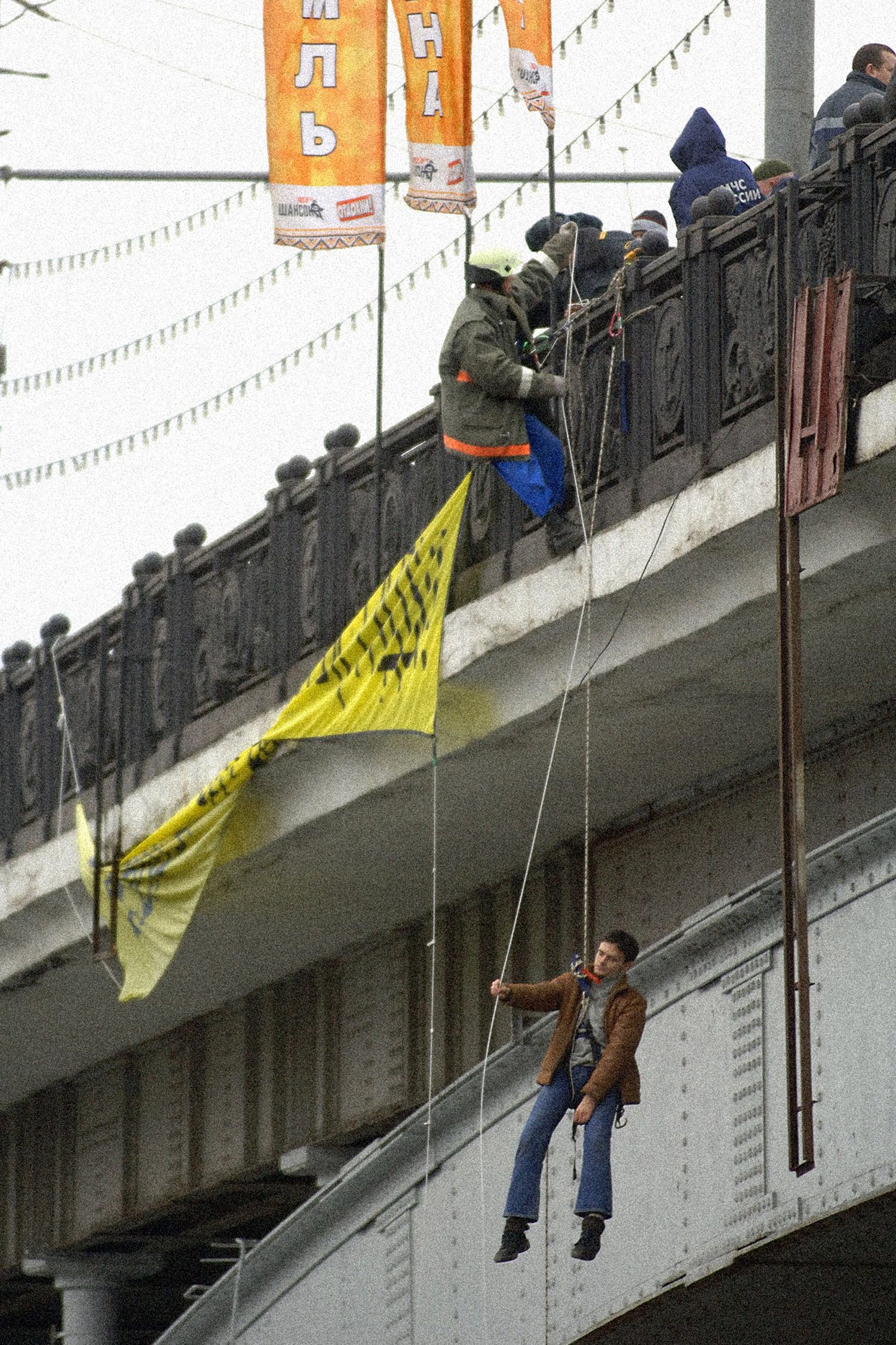 О своих политических акциях Илья нас заранее не предупреждал — старался оберегать. Так, например, об акции «Верните народу выборы, гады!» в ноябре 2006 года я узнал в момент проведения акции, когда был в машине. Это было неожиданно. Я ехал на работу, мне позвонил Илья и сказал, что он висит на растяжке под мостом. Я, конечно, тут же развернулся и поехал смотреть. К тому моменту все было уже огорожено полицией, но я увидел их [с Марией Гайдар] издалека.
