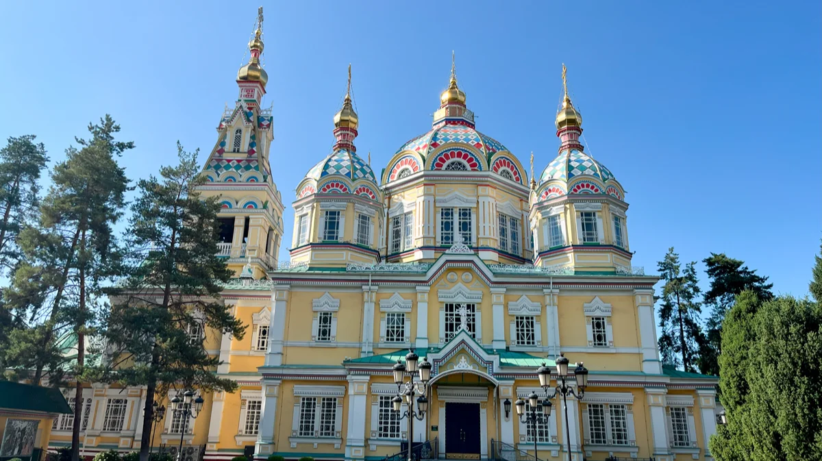 Вознесенский кафедральный собор, главная церковь города Алматы в стиле украинского барокко, 2024
