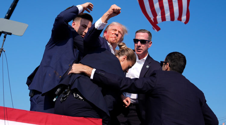Изображение окровавленного Трампа с поднятым кулаком и стоящего под гигантским американским флагом мгновенно стало символом его сторонников. «Вот боец, который нужен Америке!» — написал его сын Эрик в соцсети X.