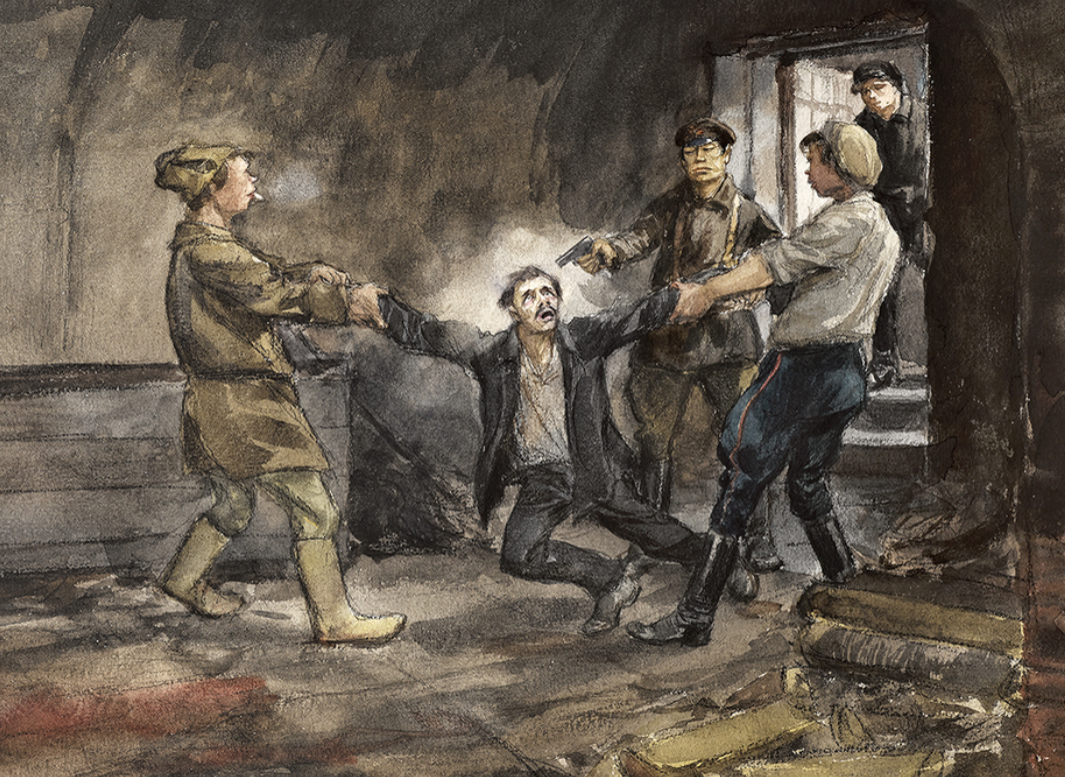 В д. Фыкалке Петровской волости ячейка была закована в кандалы и жестоко избивалась. В д. Ярах Николаевской волости ячеешников (членов коммунистических ячеек. – Прим. С.Р.) привязывали к деревьям, били по голове, кололи вилами и двух зверски убили".