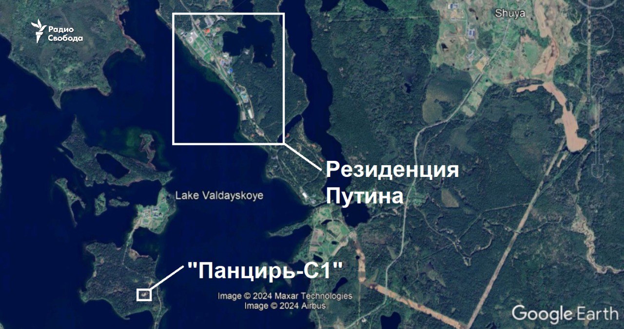 🧵1/7 New Pantsir-S1 on a tower has been recently installed just 3.7 kilometers from Vladimir Putin%27s residence on Valdai Lake, according to updated Google Earth imagery dated May 6th, 2024. 57.979219, 33.302010 pic.twitter.com/RcEz4WU7Ki