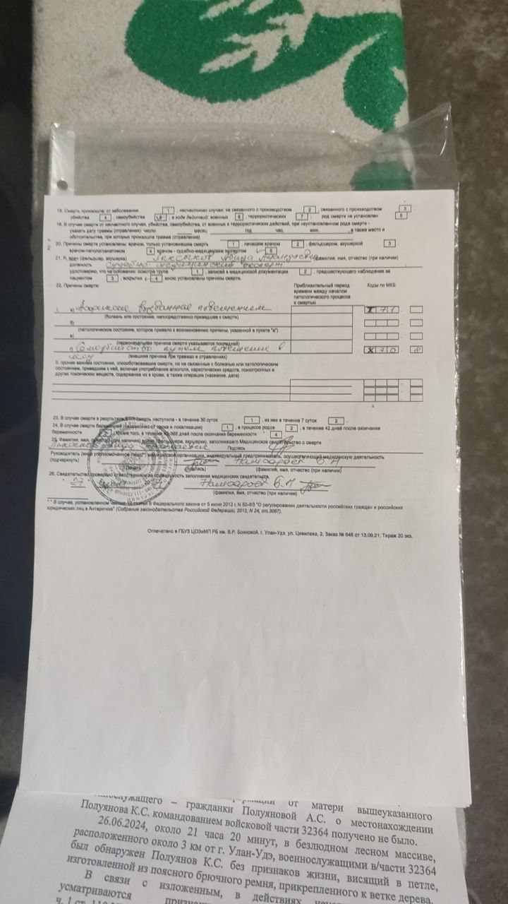 26 июня 2024 года в Улан-Удэ в 11 километрах от воинской части №32364 в лесу нашли тело 20-летнего солдата срочной службы Кирилла Полуянова. Военные считают, что это суицид. Родные уверены, что его убили сослуживцы из-за того, что он отказался платить старослужащим и подписывать контракт. Незадолго до гибели Полуянову удалось перевестись на службу в медсанчасть из ВДВ 11-й бригады.