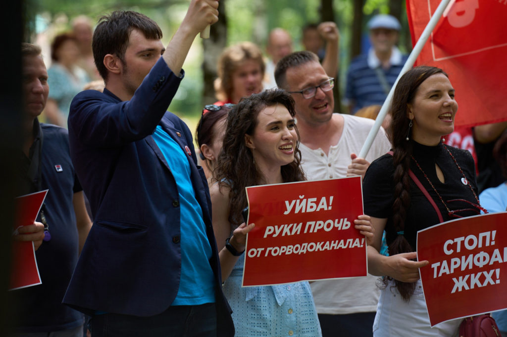 6 июля в Сыктывкаре состоялась акция протеста против повышения тарифов ЖКХ, которую организовало региональное отделение КПРФ. С 1 июля цены на воду и отопление повысили на 13,5%, на газ — на 11%. На митинге в том числе требовали отставки главы Республики Коми Владимира Уйбы.