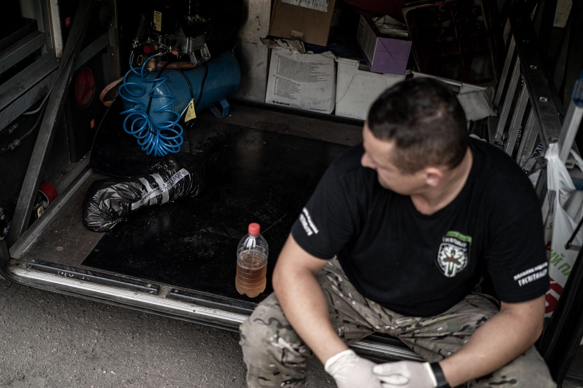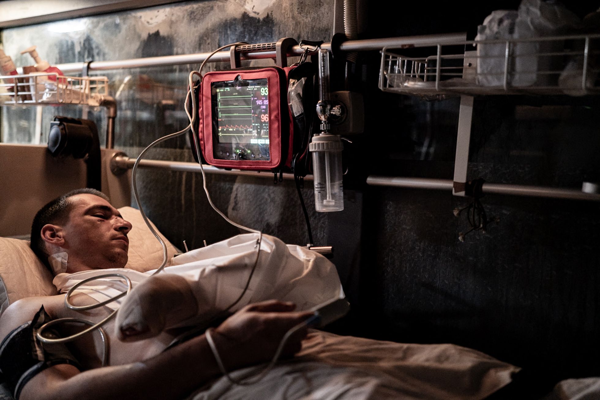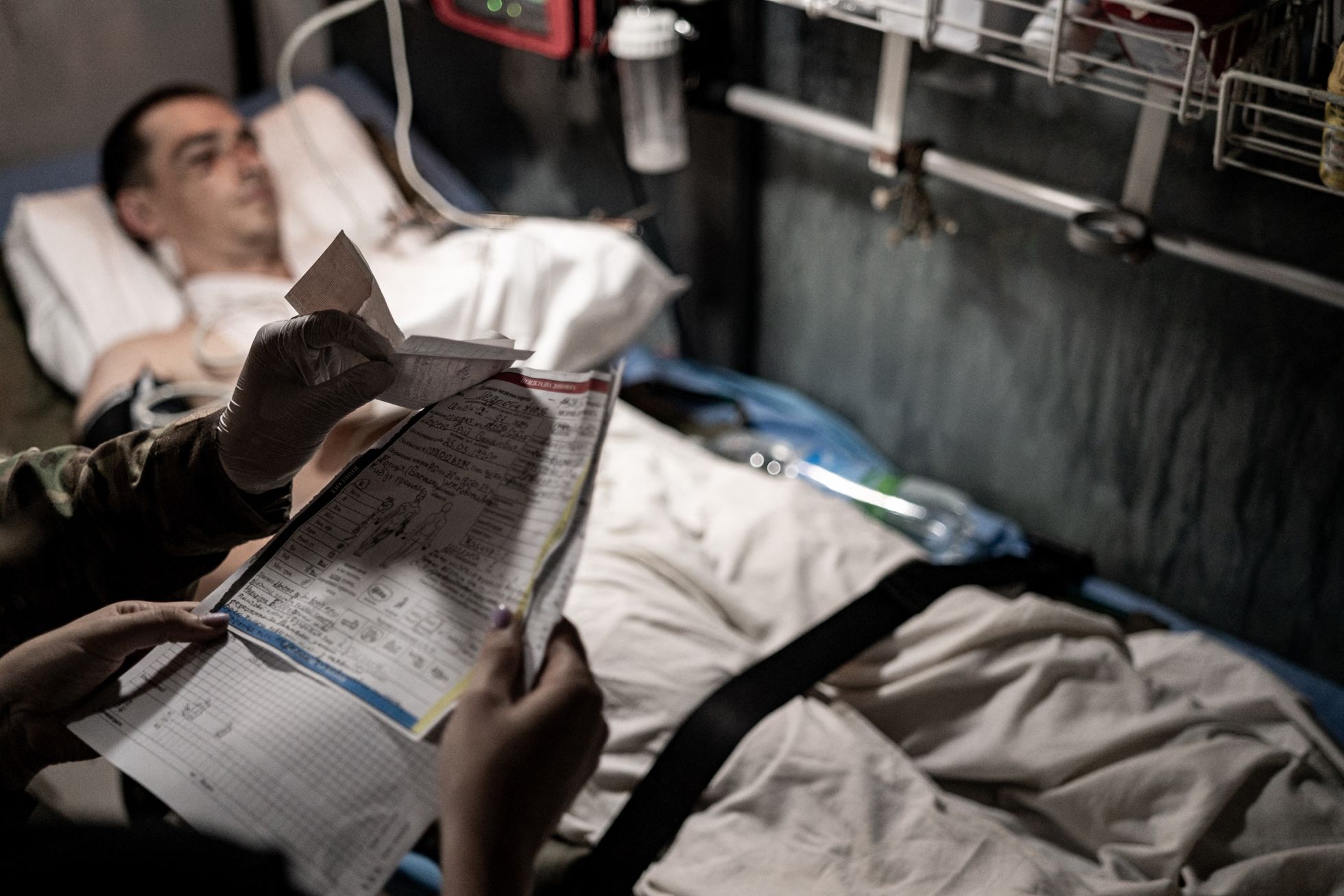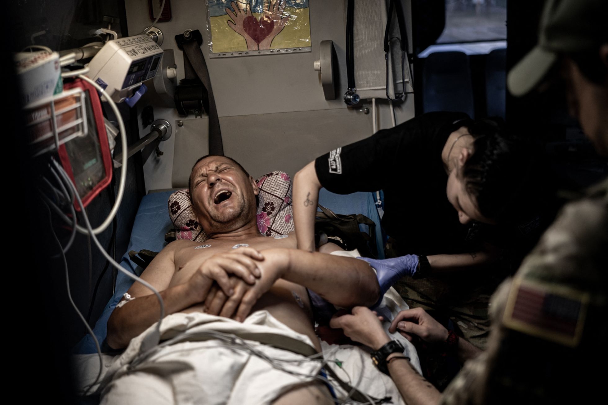 Фотограф турецкого агентства Anadolu Винченцо Чиркоста побывал на фронте в Донецкой области, где стал свидетелем эвакуации раненых военнослужащих ВСУ. Снимки сделаны 19 июля, точное место съемки не раскрывается. Военных с линии фронта вывозят на специально оборудованном больничном автобусе участники добровольческого медицинского батальона «Госпитальеры». Среди военнослужащих есть тяжелораненые с ампутированными конечностями. К какому подразделению ВСУ они относятся, неизвестно.